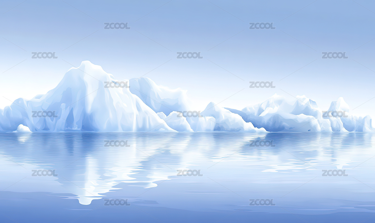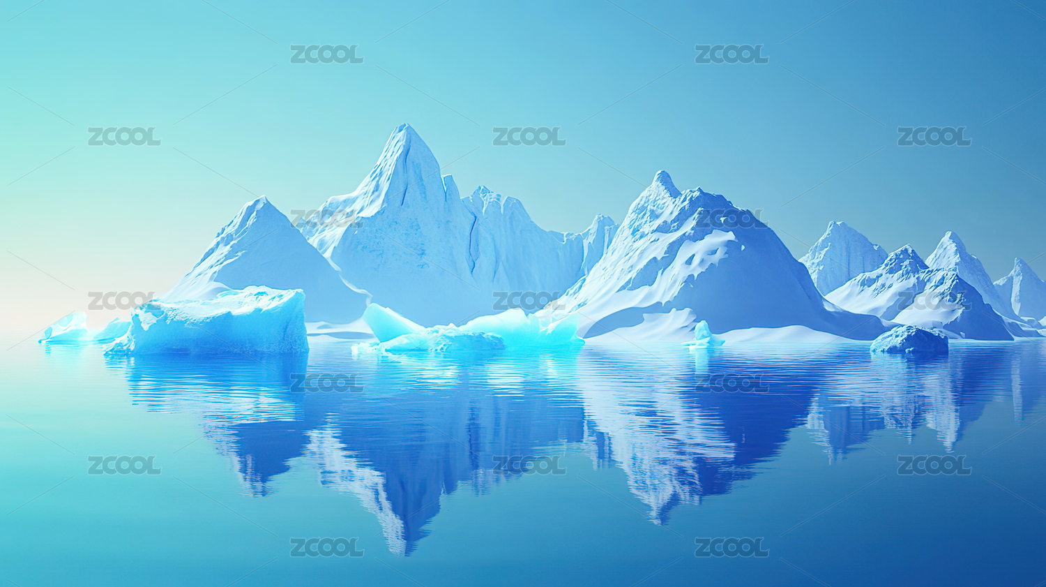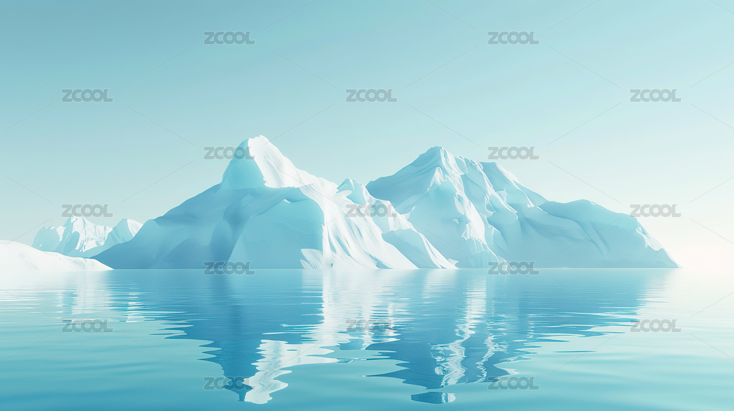 冰山倒映在平静的海面上