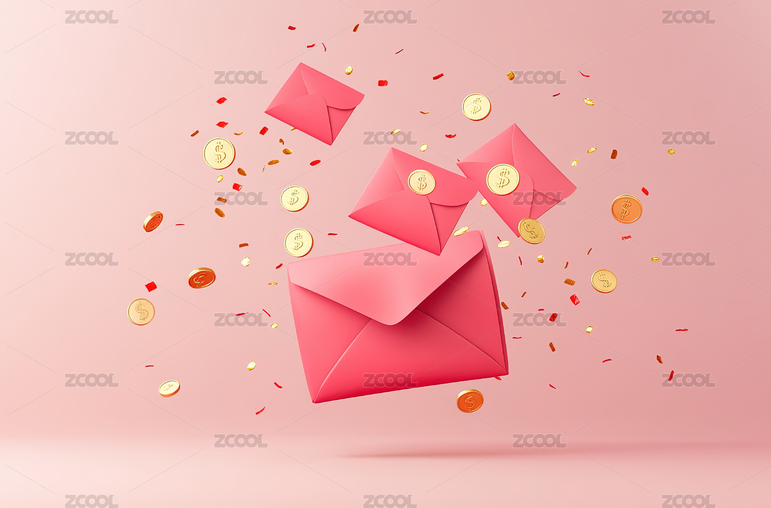 粉红色背景上的礼物和红色心形装饰的特写镜