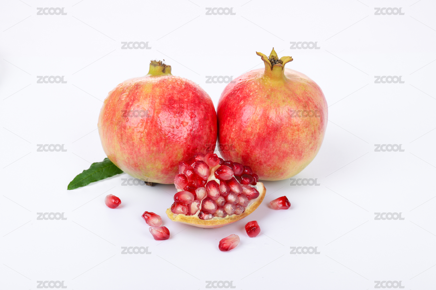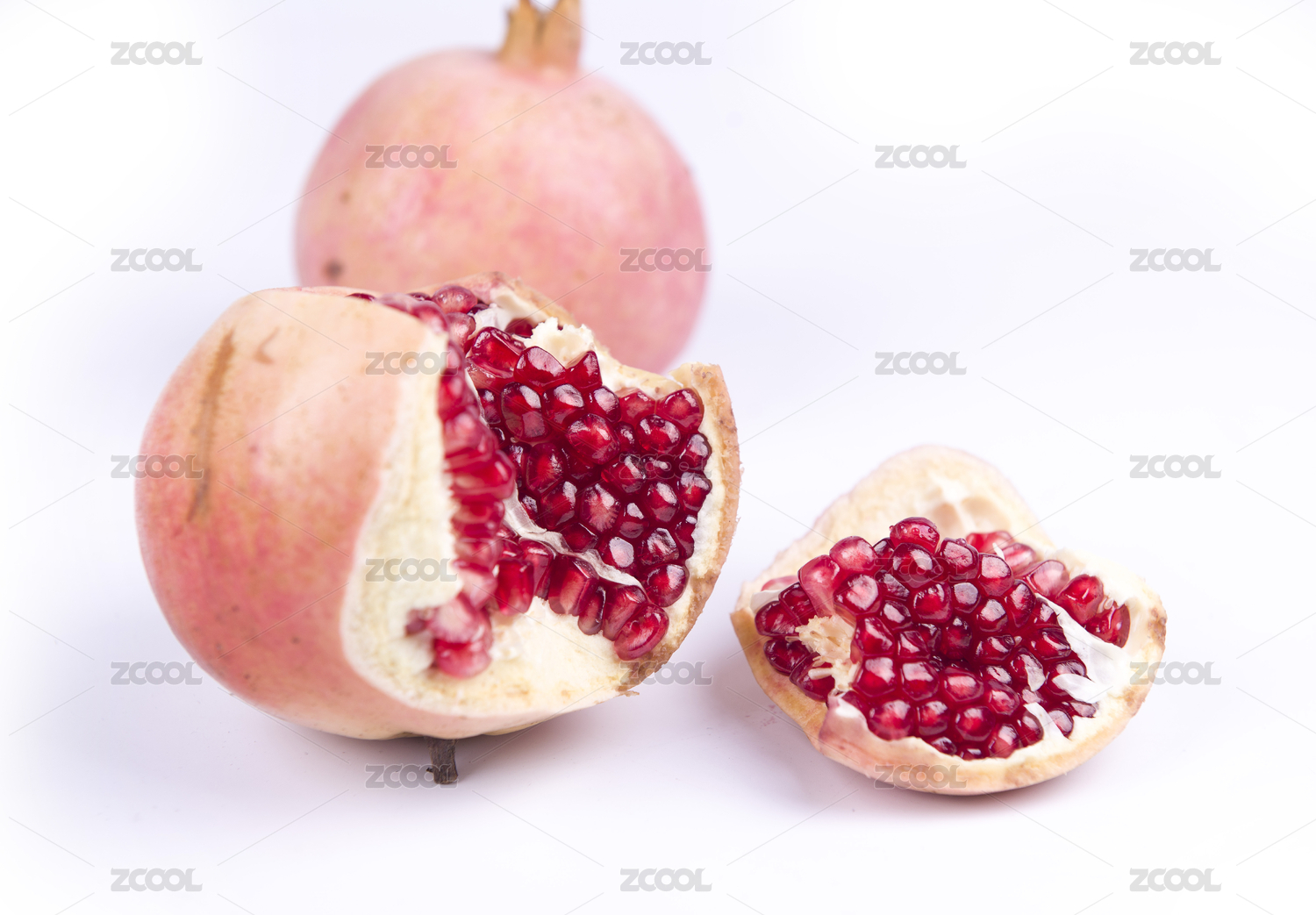 白底上剥开的新鲜软籽石榴