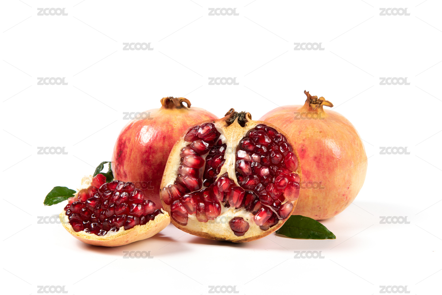 几个新鲜石榴放在白色背景上