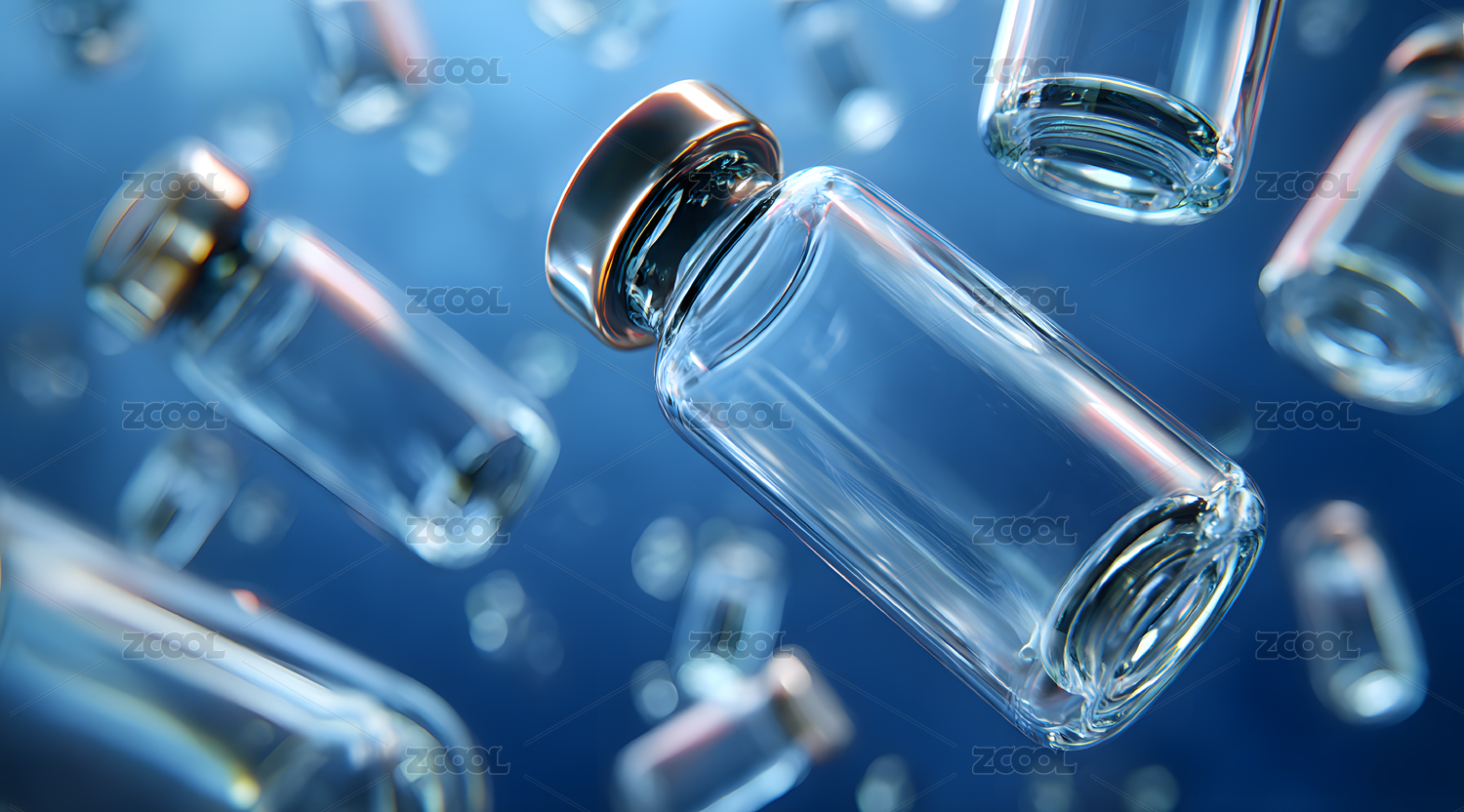 漂浮在蓝色背景下的医药瓶