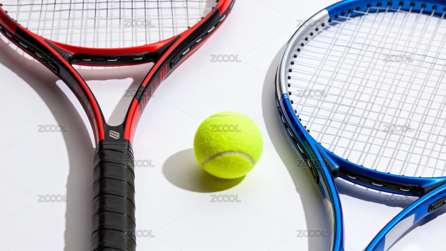 一副叠放的乒乓球拍与白色乒乓球,红色背景