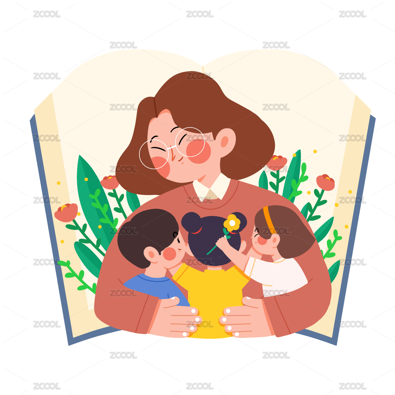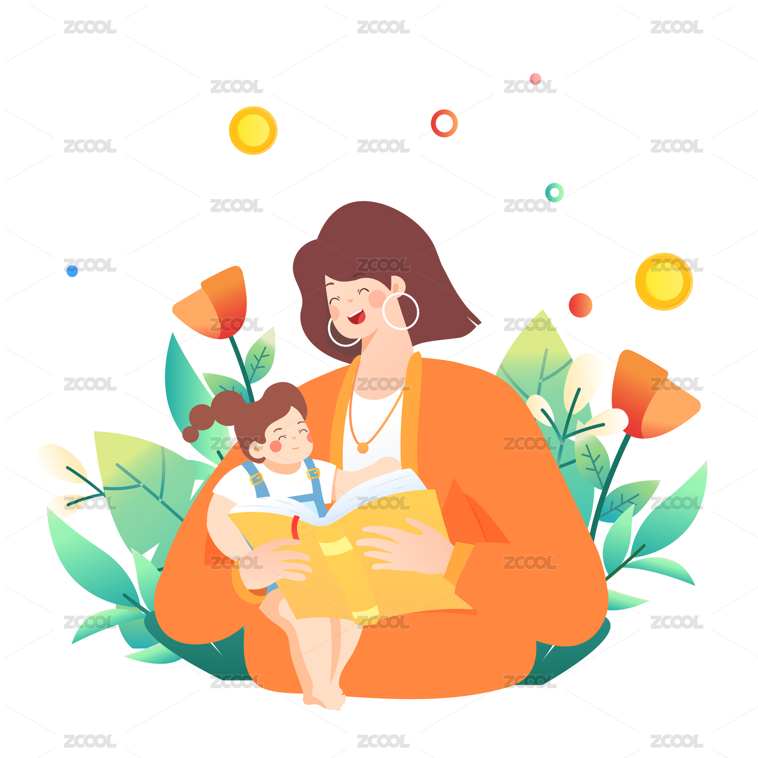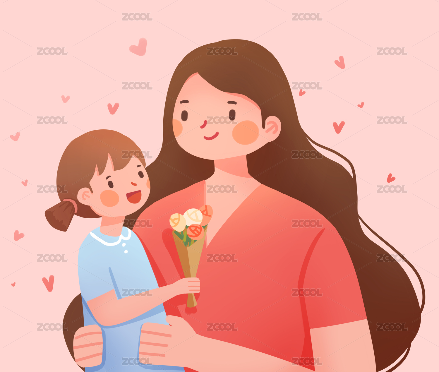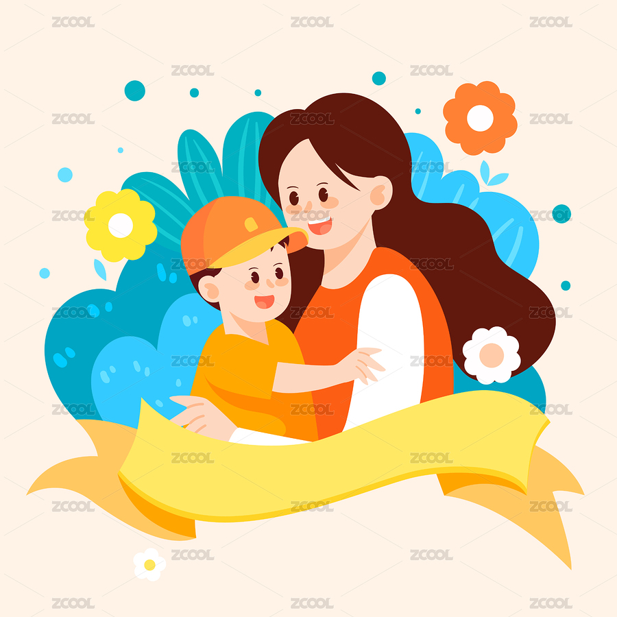 卡通母亲节感恩节鲜花亲子矢量插画海报素材