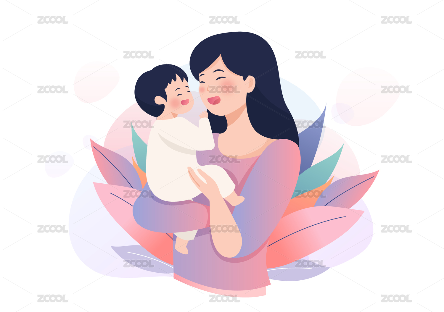 扁平风矢量插画妈妈抱着孩子母亲节素材