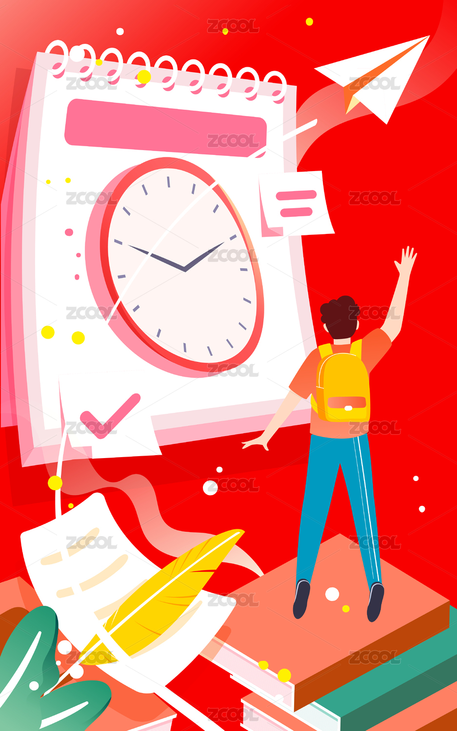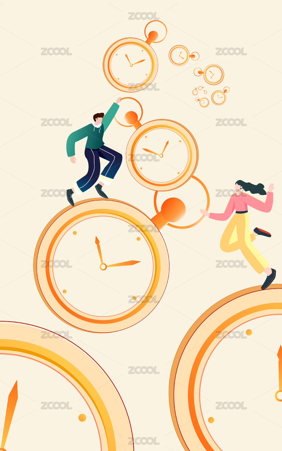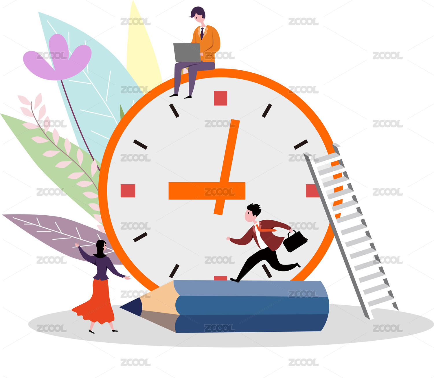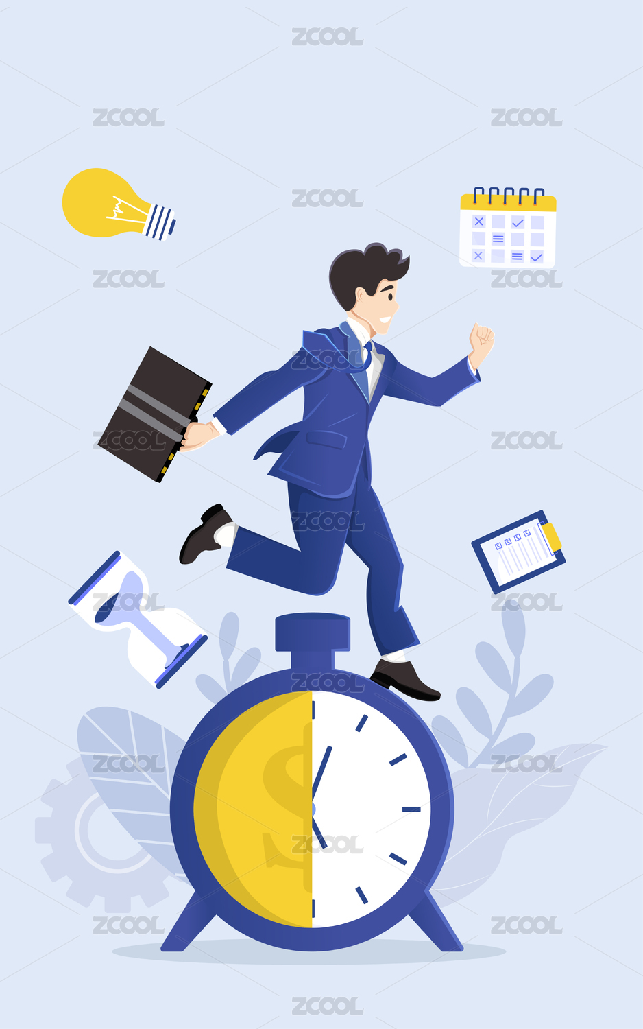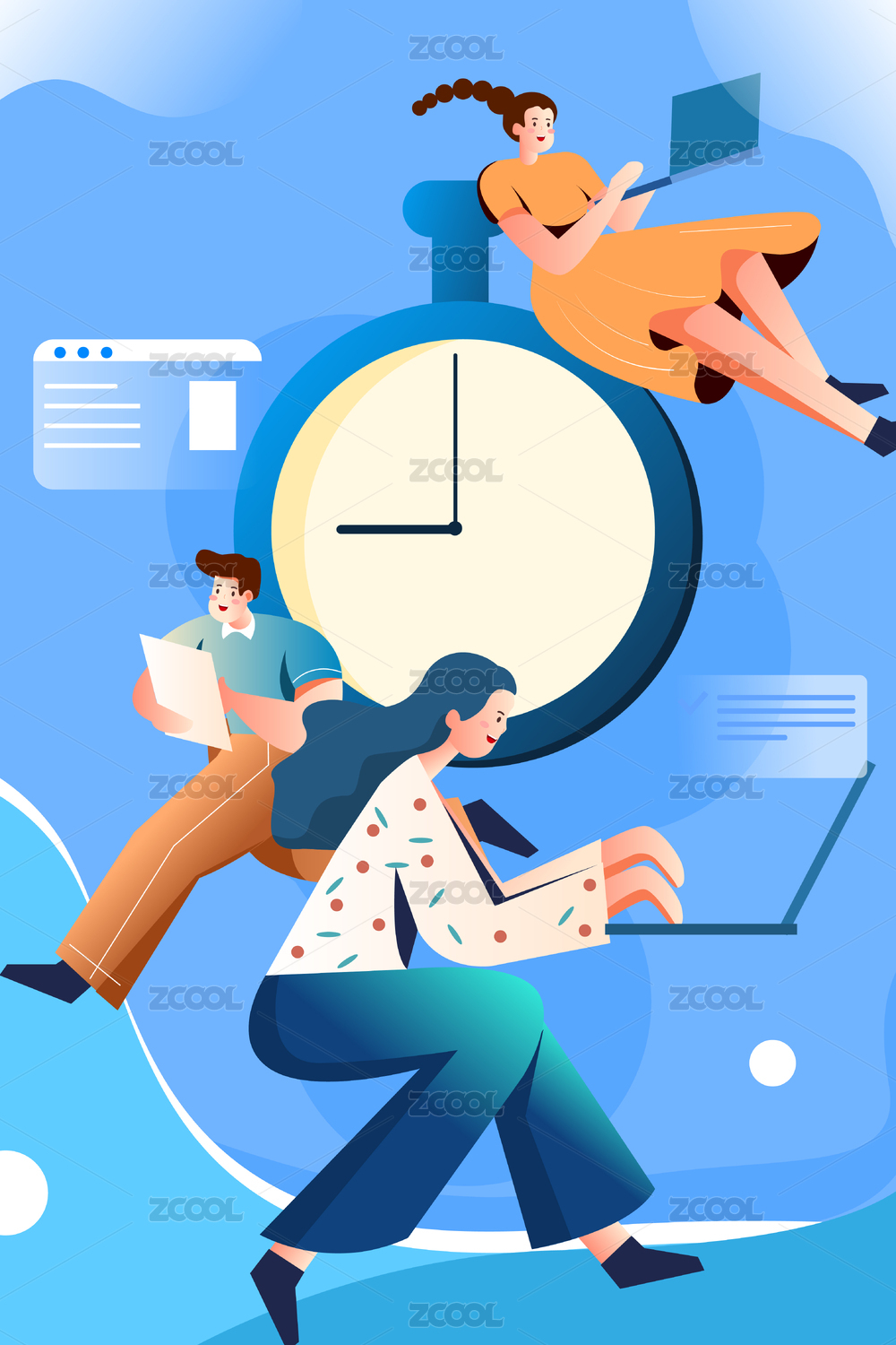 人物上班工作赶时间迟到奔跑活动倒计时插画