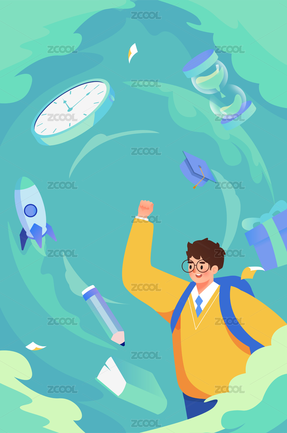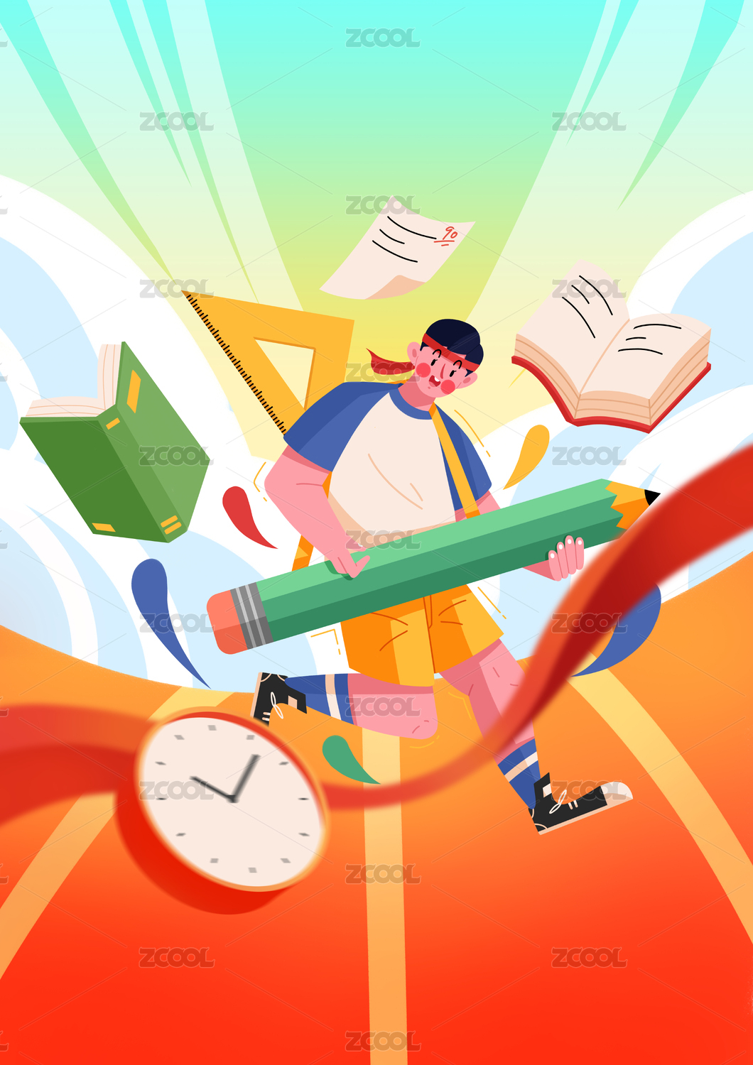 高考倒计时学生欢乐跳跃插画考试加油海报