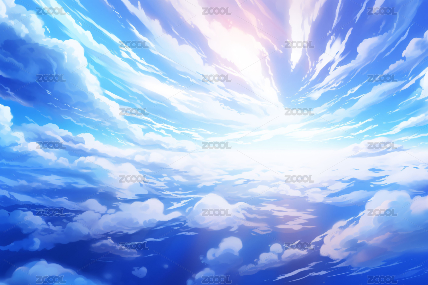 梦幻治愈云层夏天唯美天空云彩风景插画