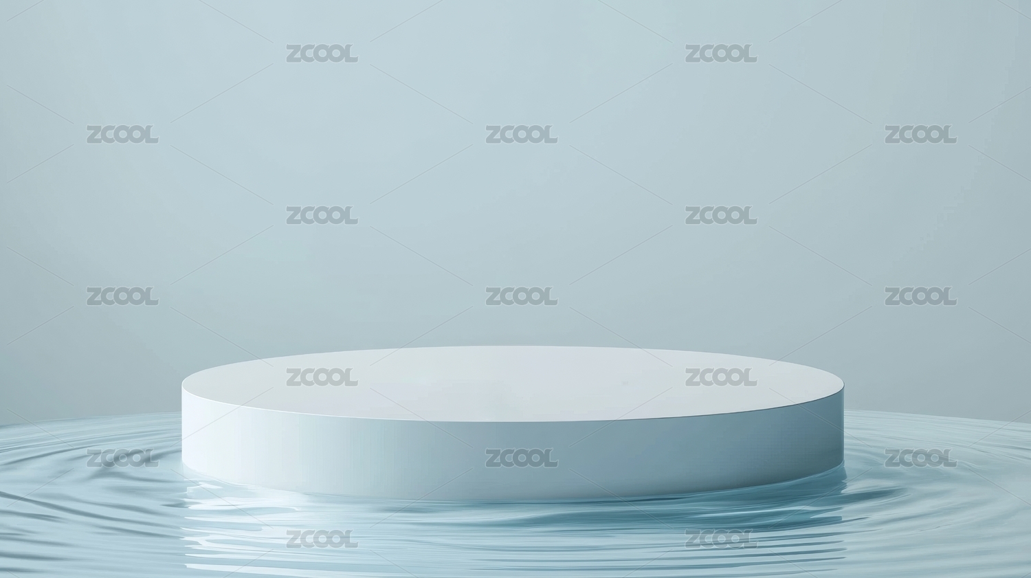 水波纹背景上的白色圆台