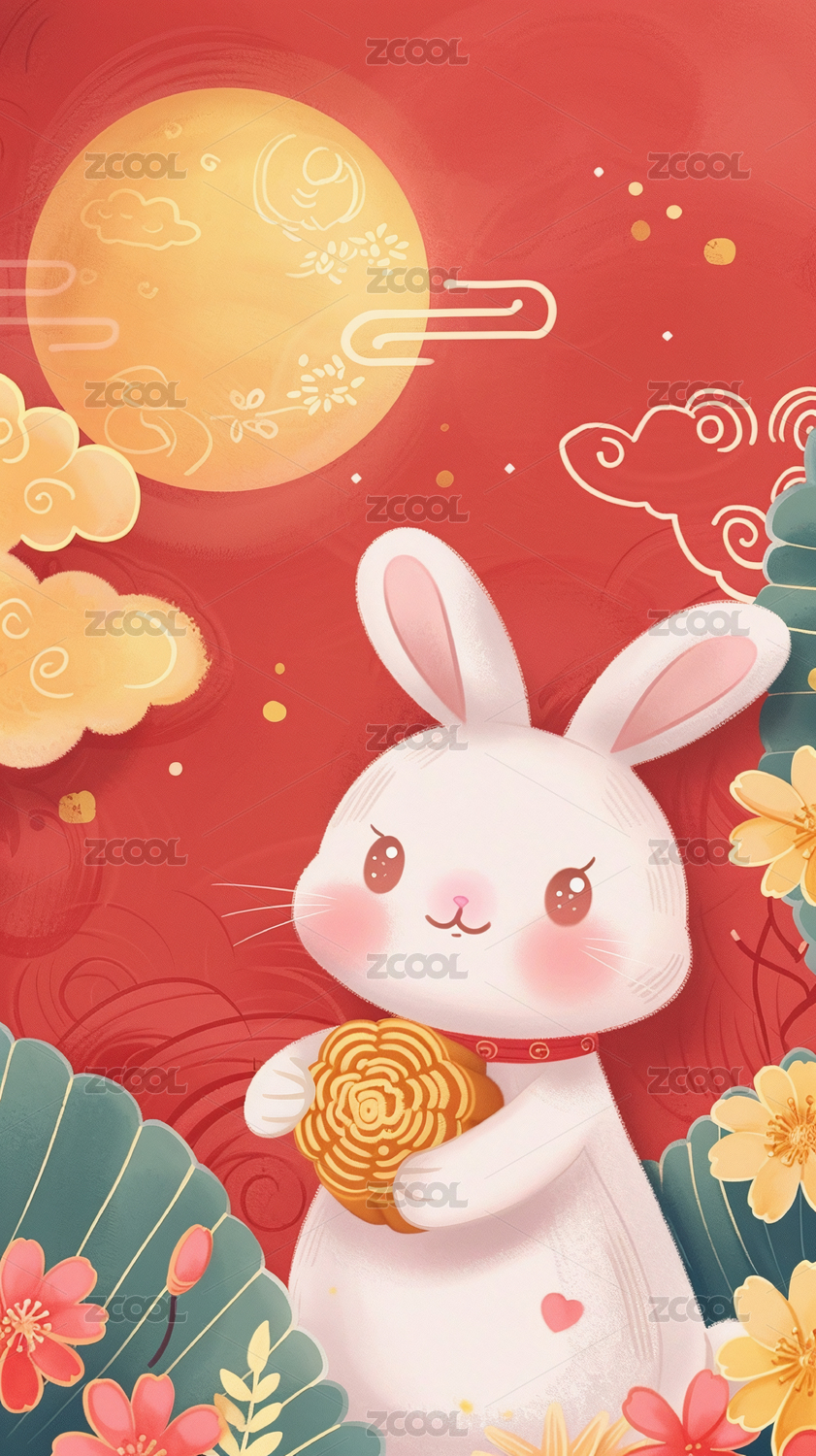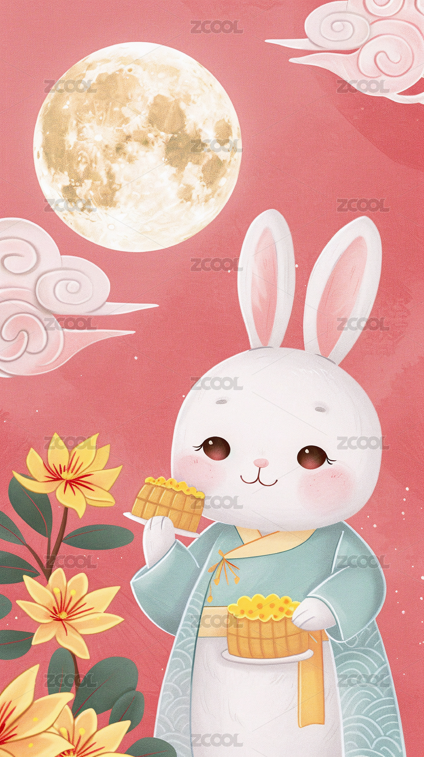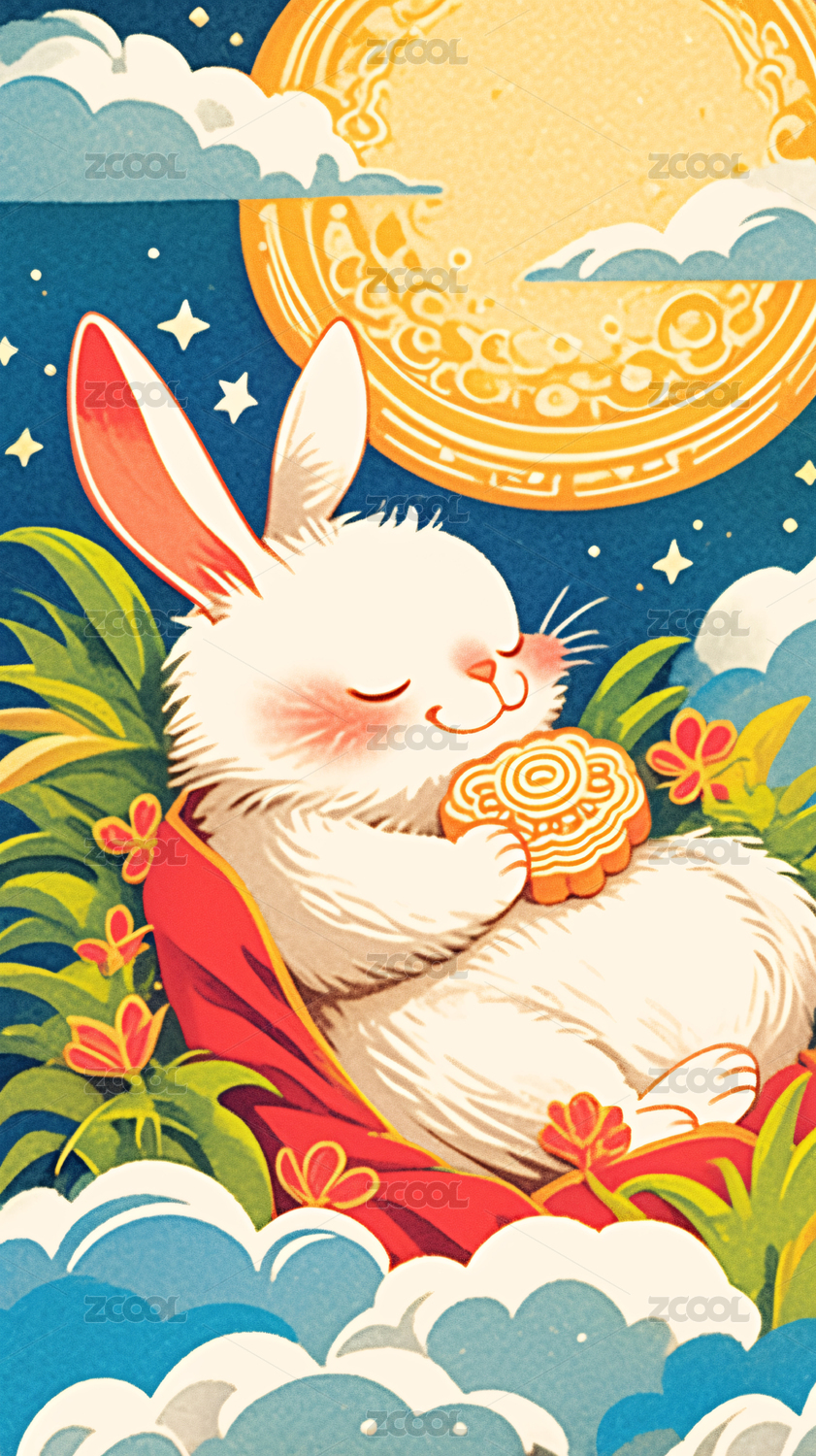 玉兔,节日,兔子,月亮,传统,中秋节,团圆,中国风,插画,庆祝