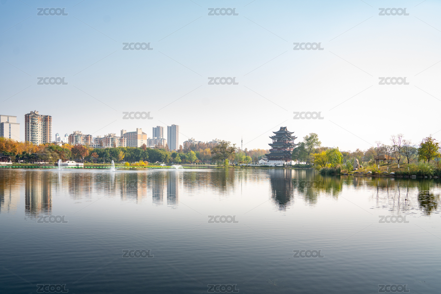 江苏省南京市莫愁湖公园湖滨都市建筑景观