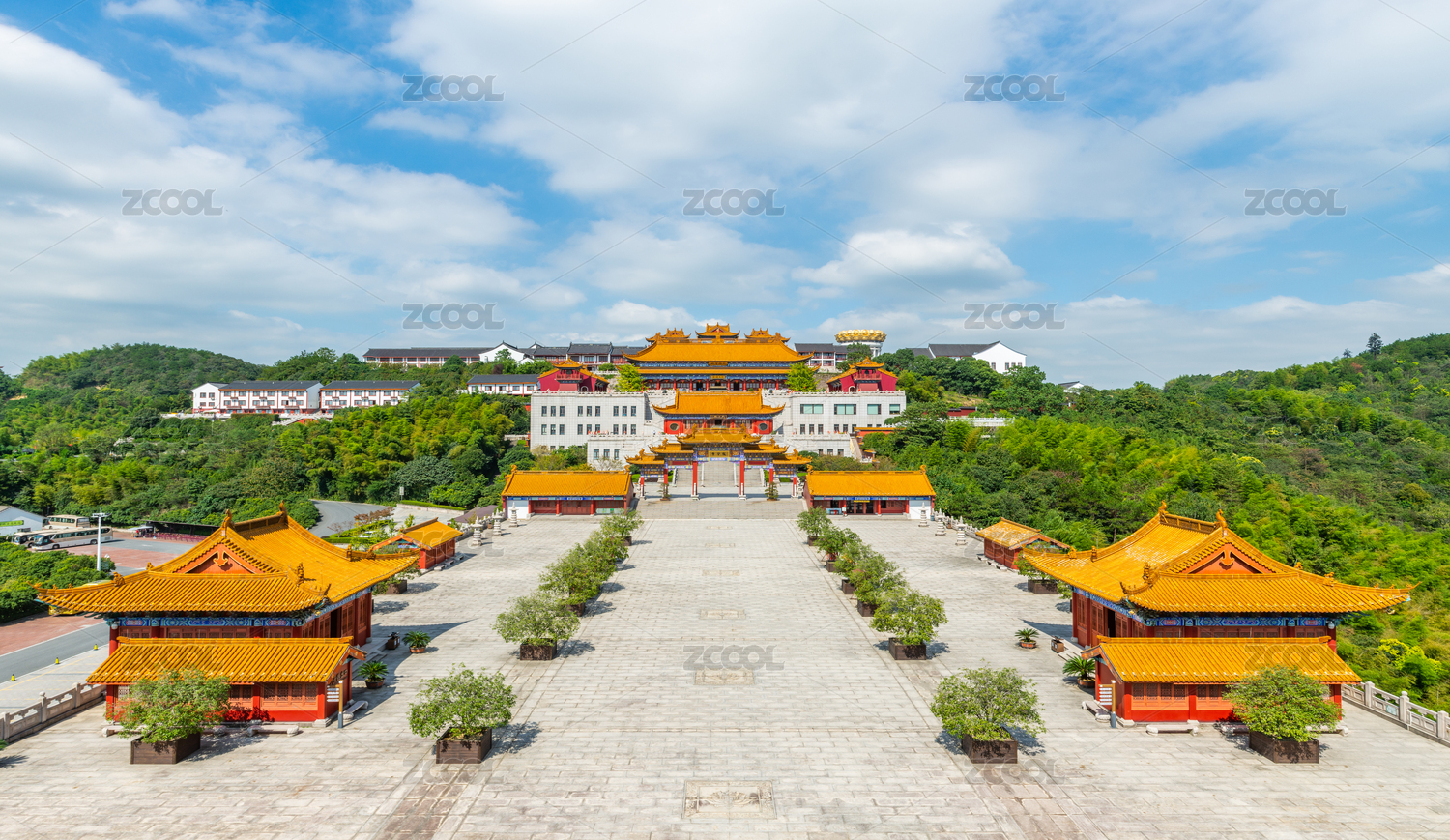 浙江绍兴会稽山兜率天景区龙华寺全景
