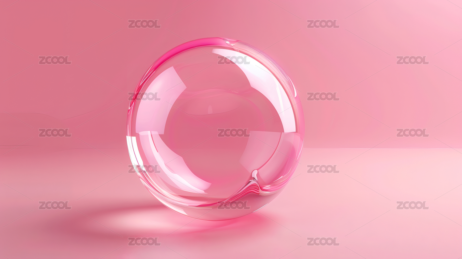 一个透明的玻璃圆球在粉色背景上