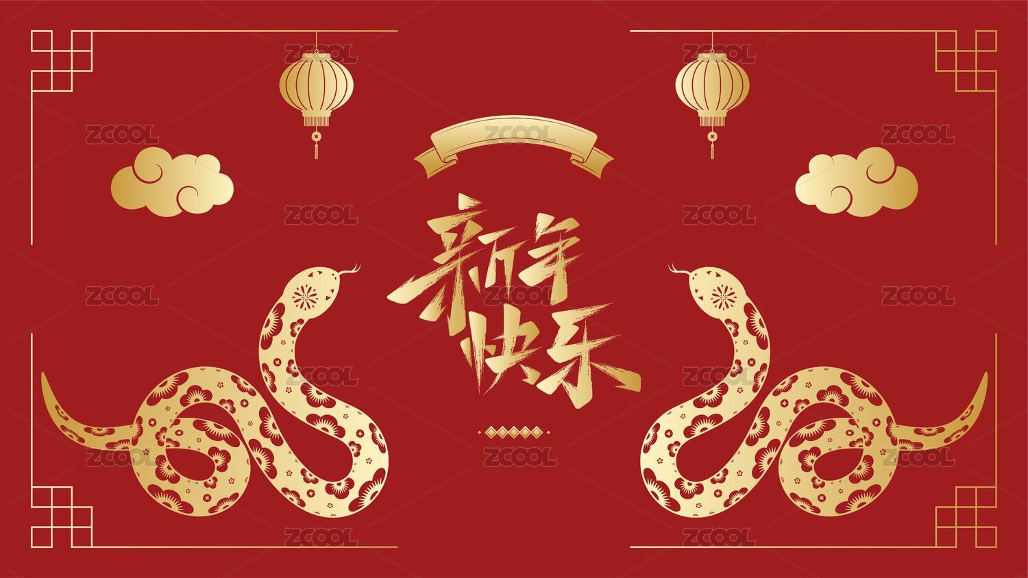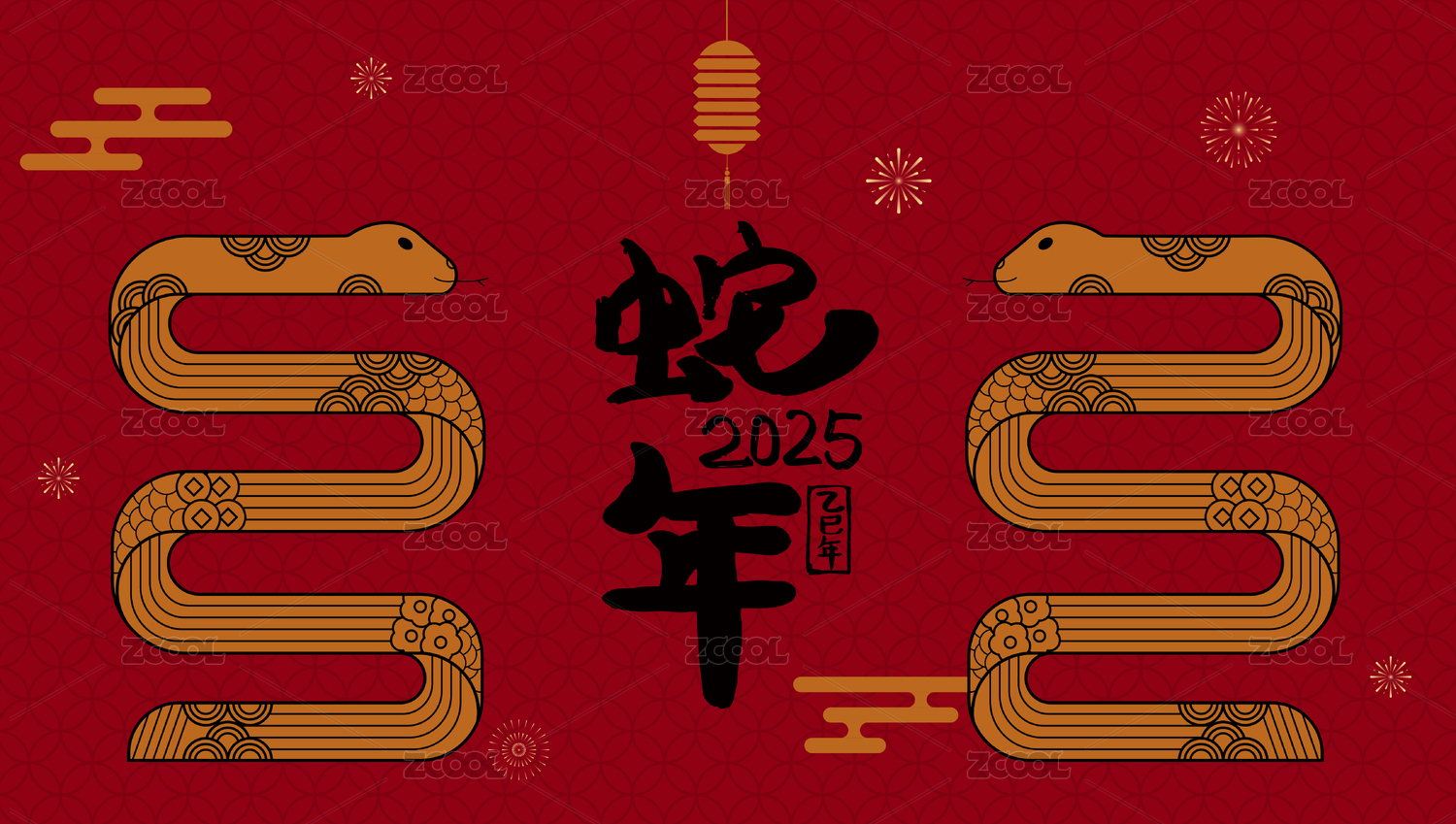 蛇年,蛇,插画,新年,喜庆,过年,窗花,剪纸,红色,元旦
