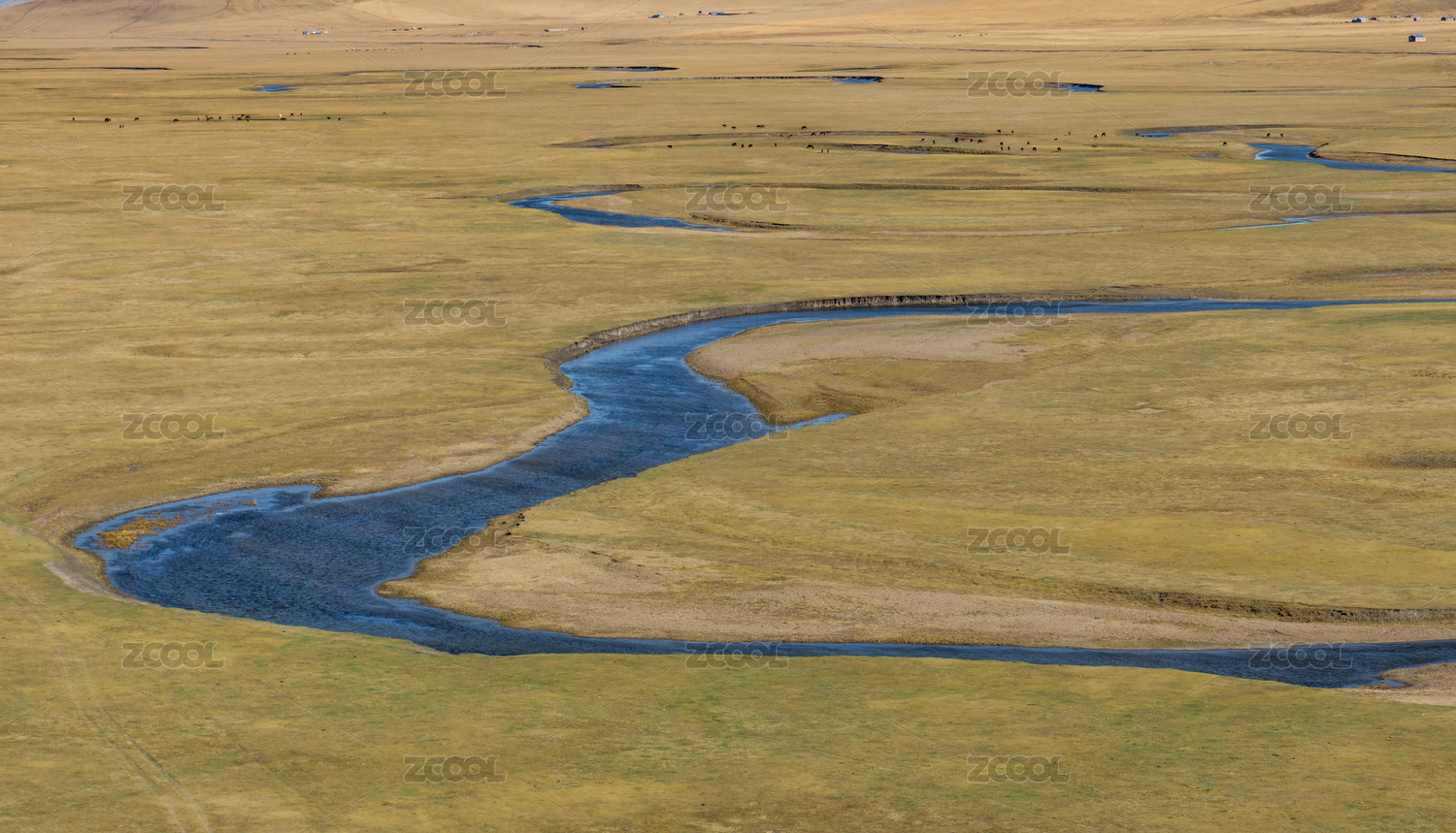 内蒙古呼伦贝尔彩带河草原风光