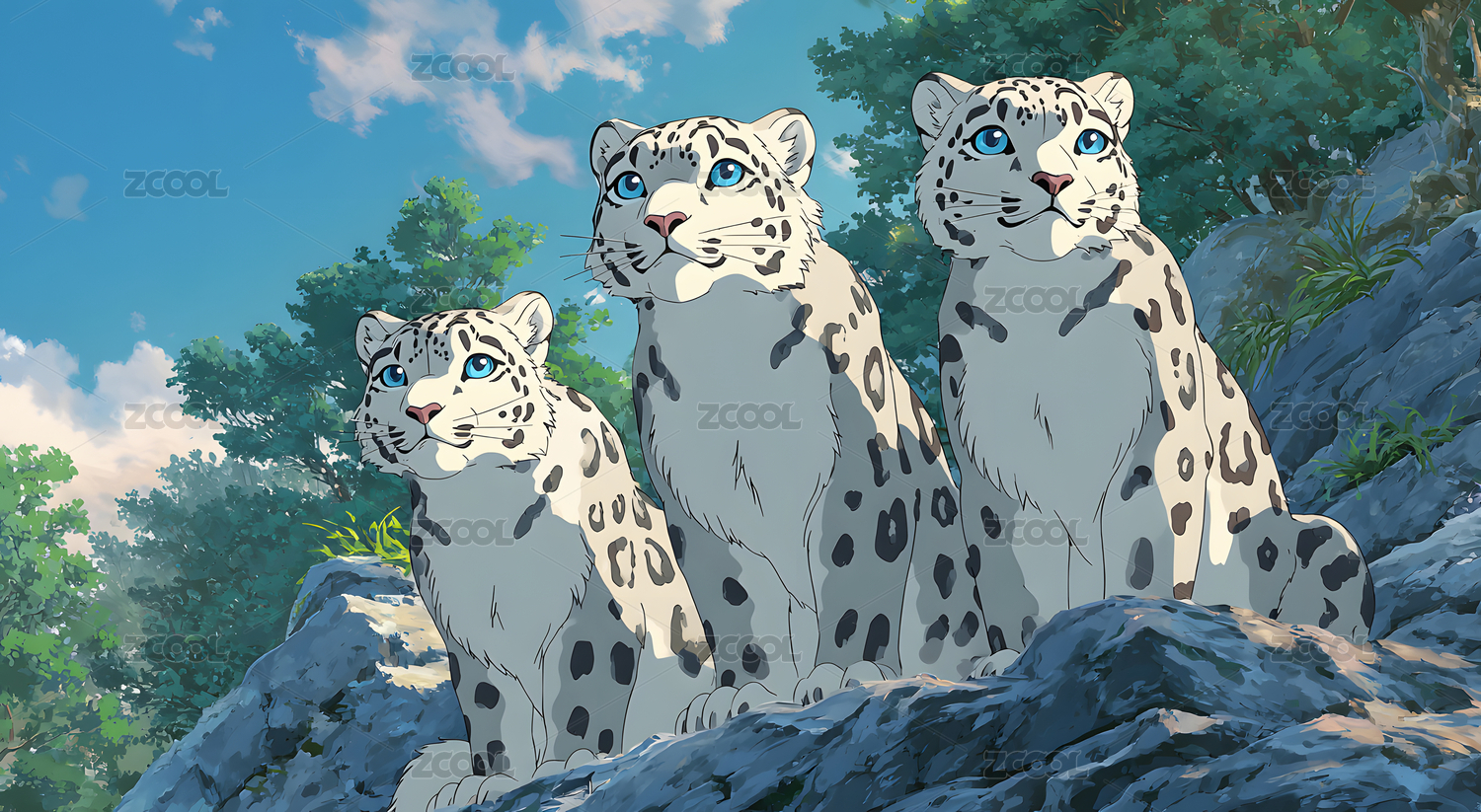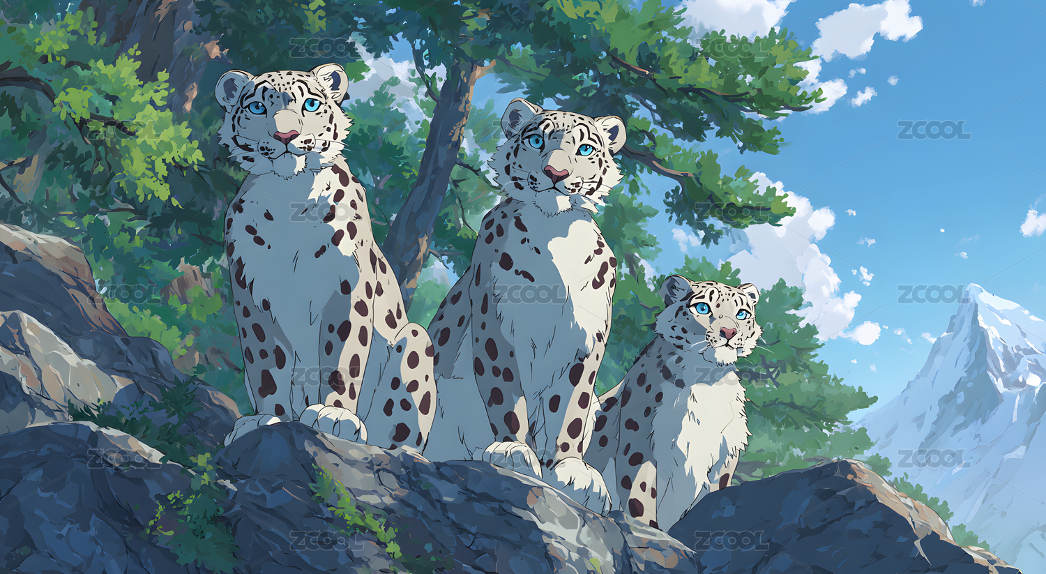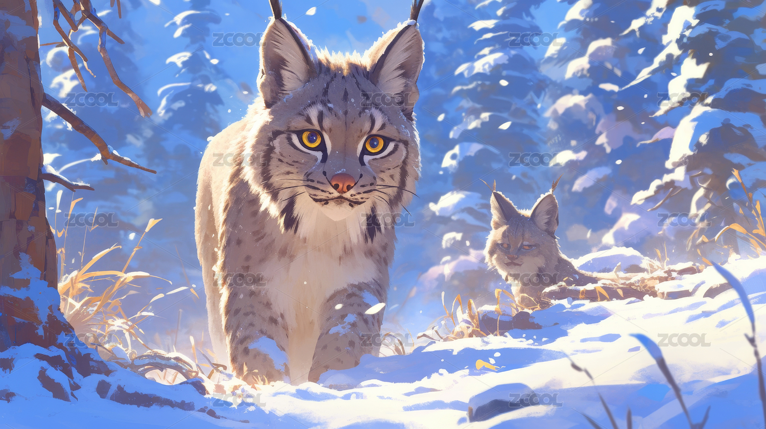 绘画,艺术,动物,水彩,雪豹,枝头,野生动物,雪景,写实,淡雅