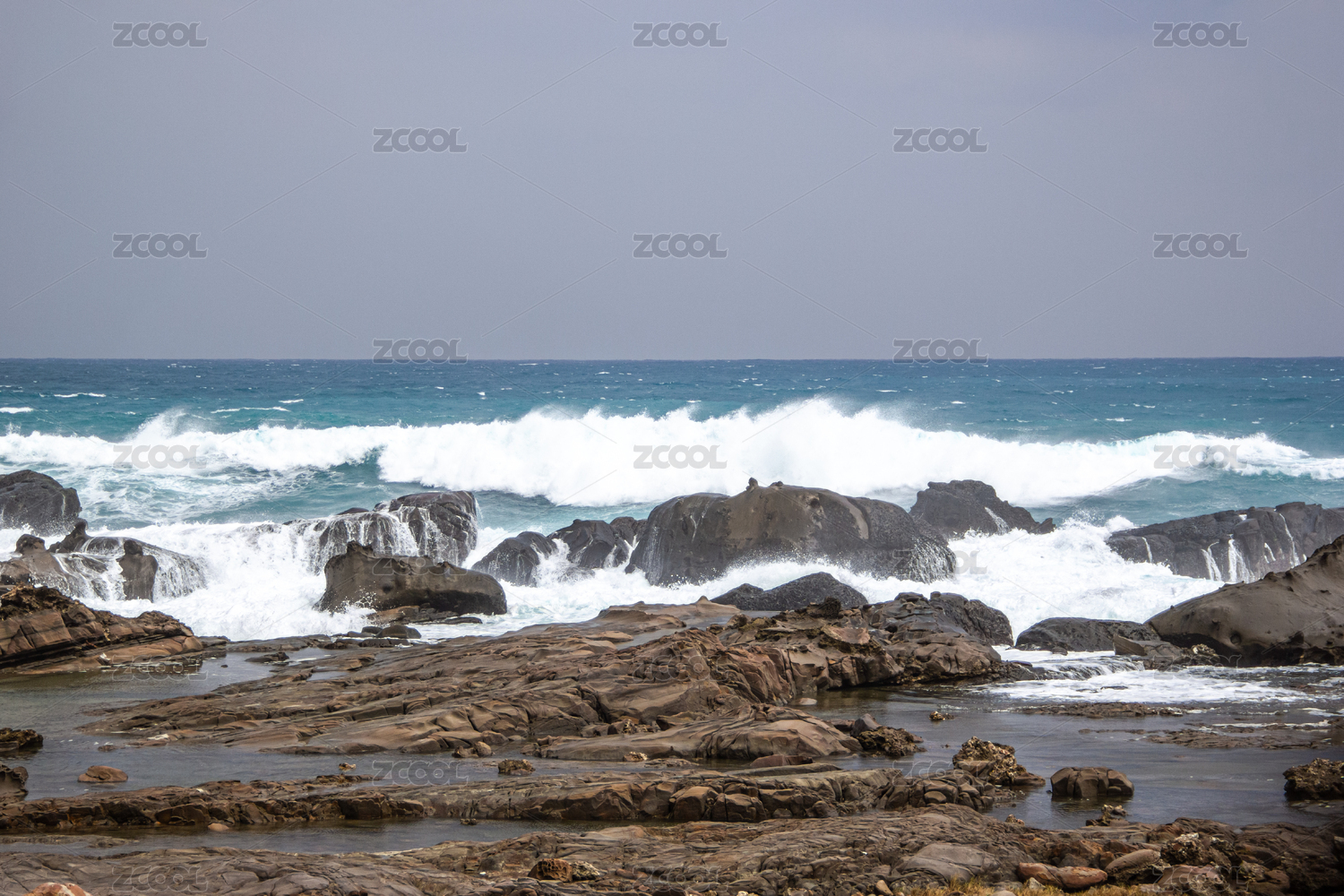 中国台湾垦丁 海浪拍打礁石溅起水花