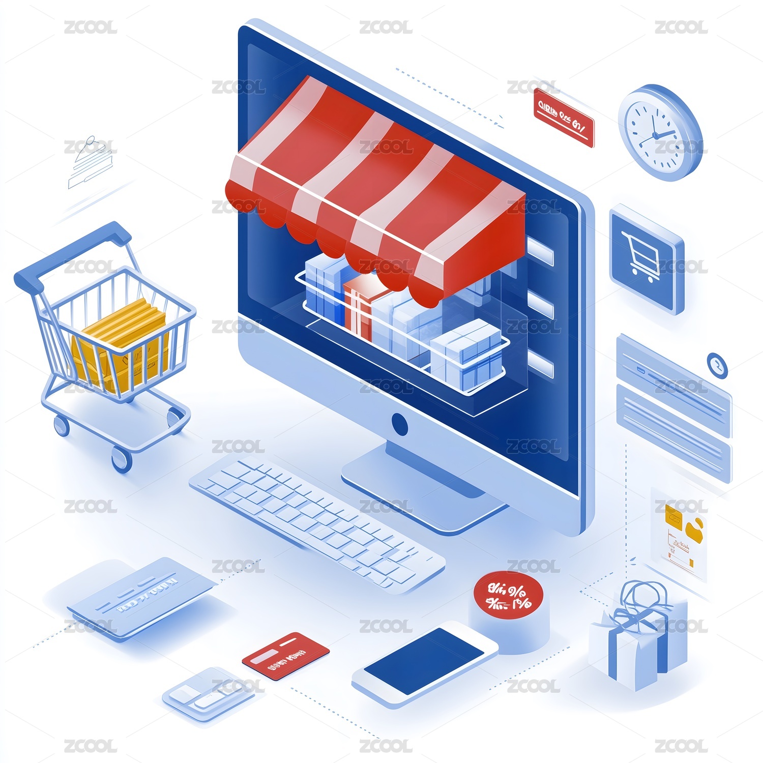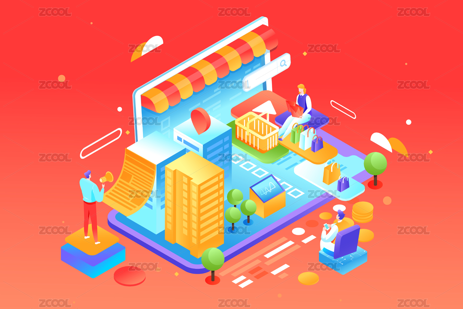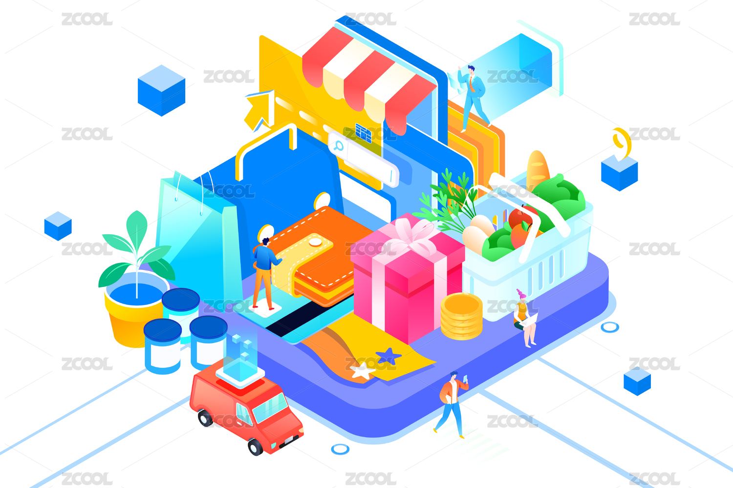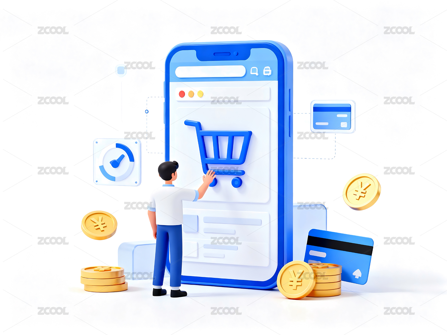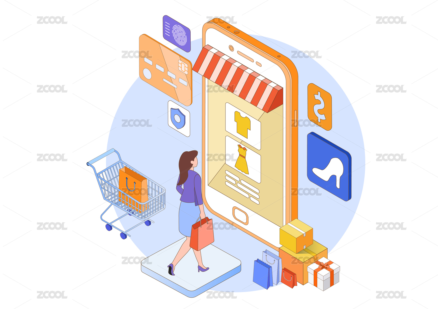 电商, 网购, 礼物, 促销, 购物袋, 3D, 粉色, 插图, 手机购物, 购物车