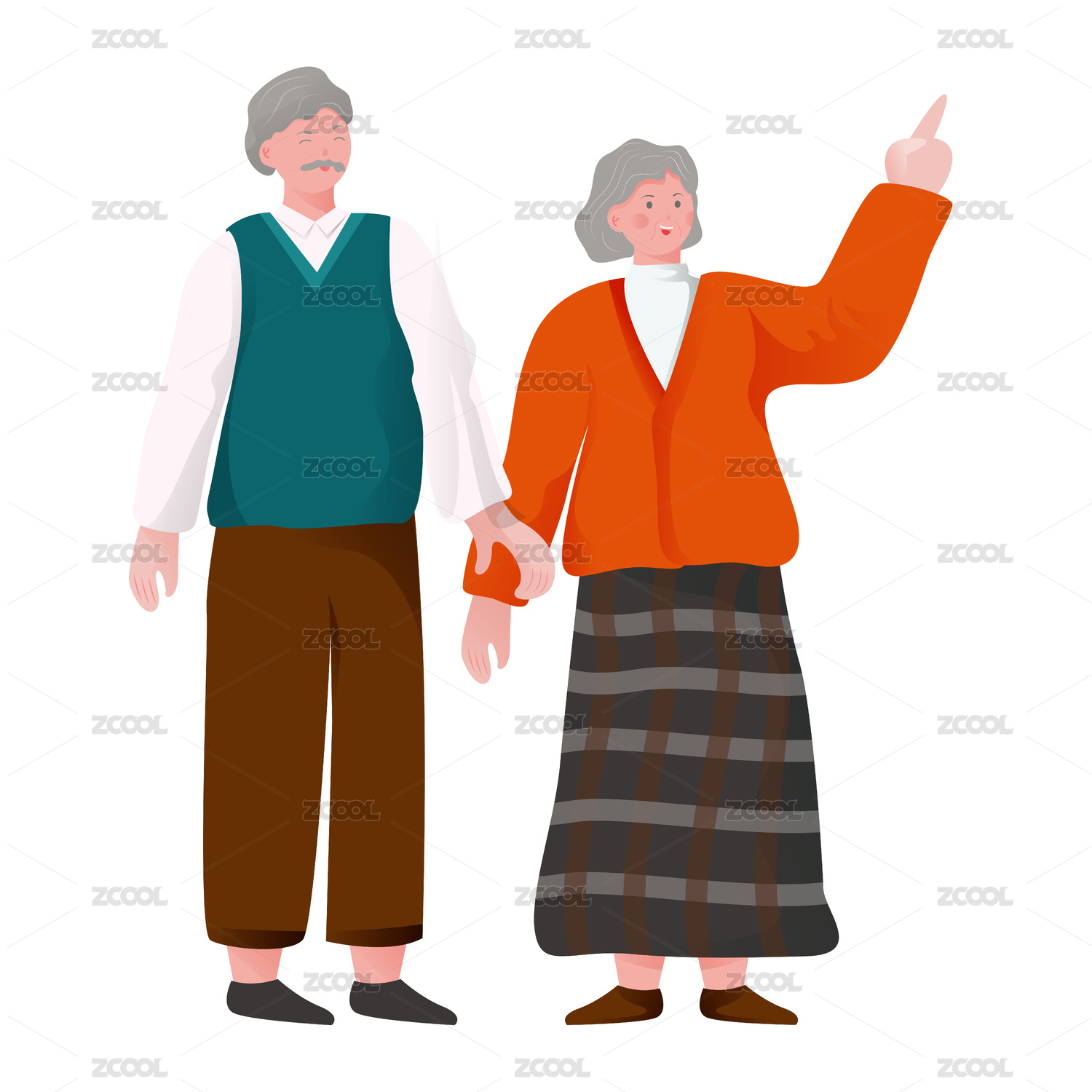 老年夫妻扁平人物插画元素