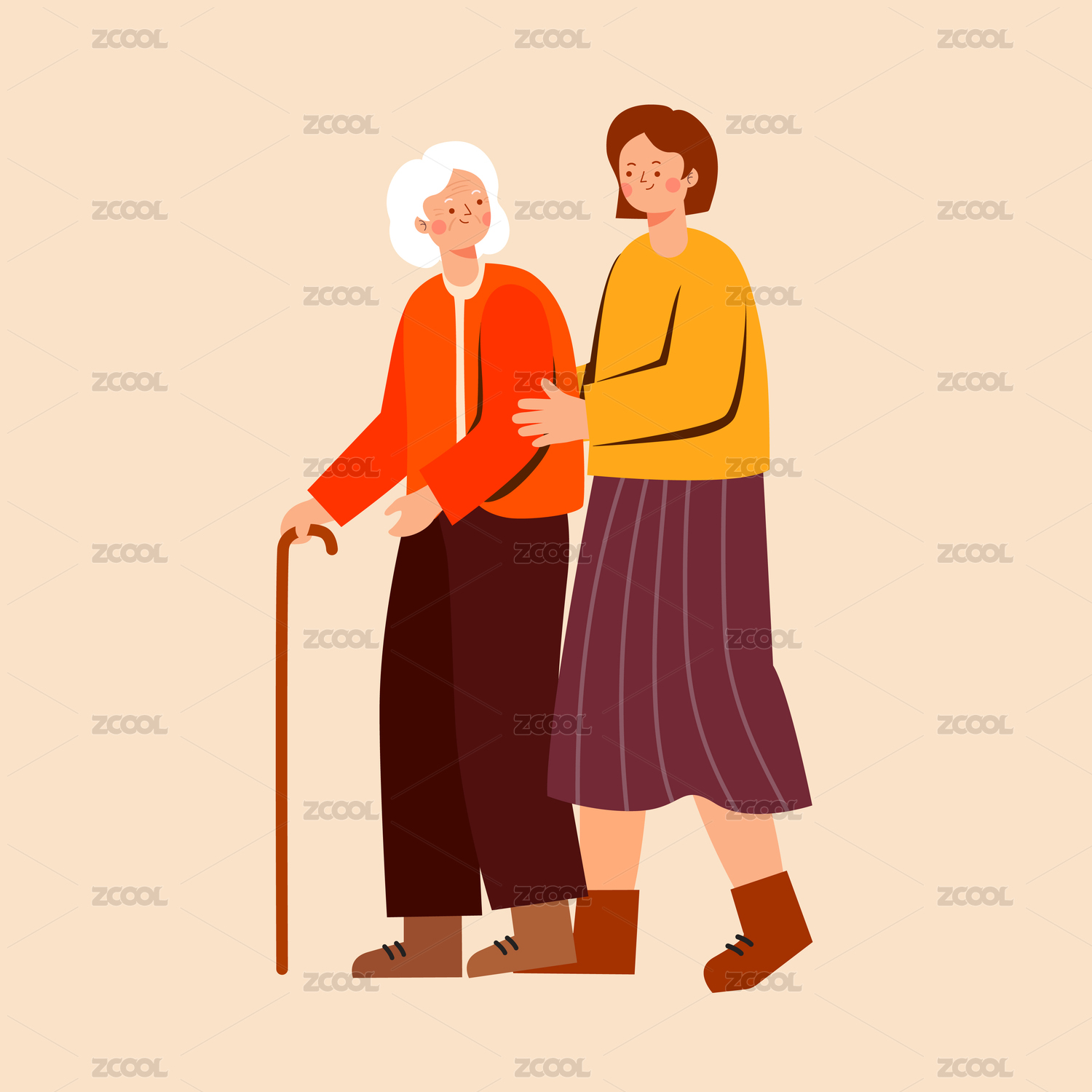 搀扶着老人矢量插画