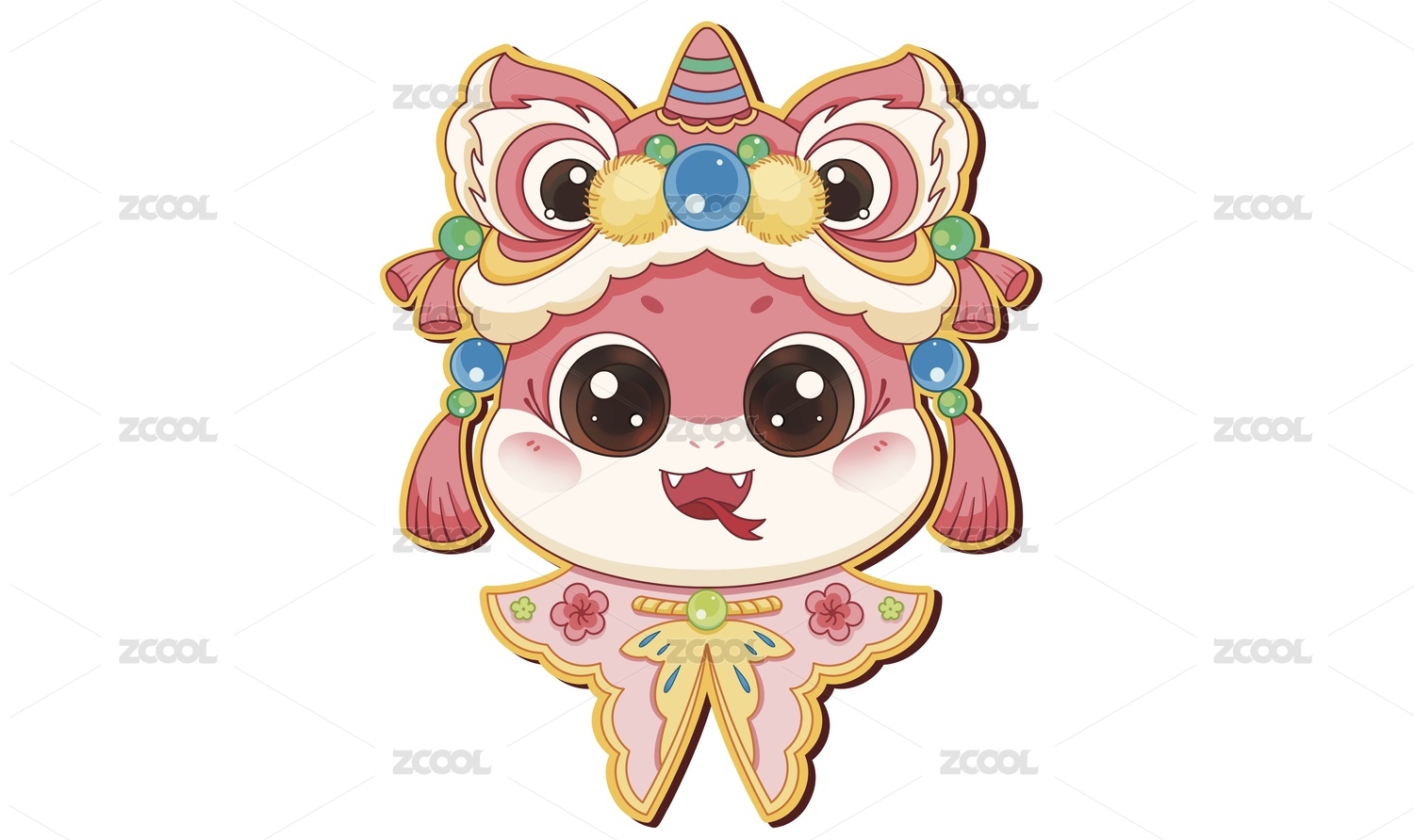 醒狮生肖蛇年插画