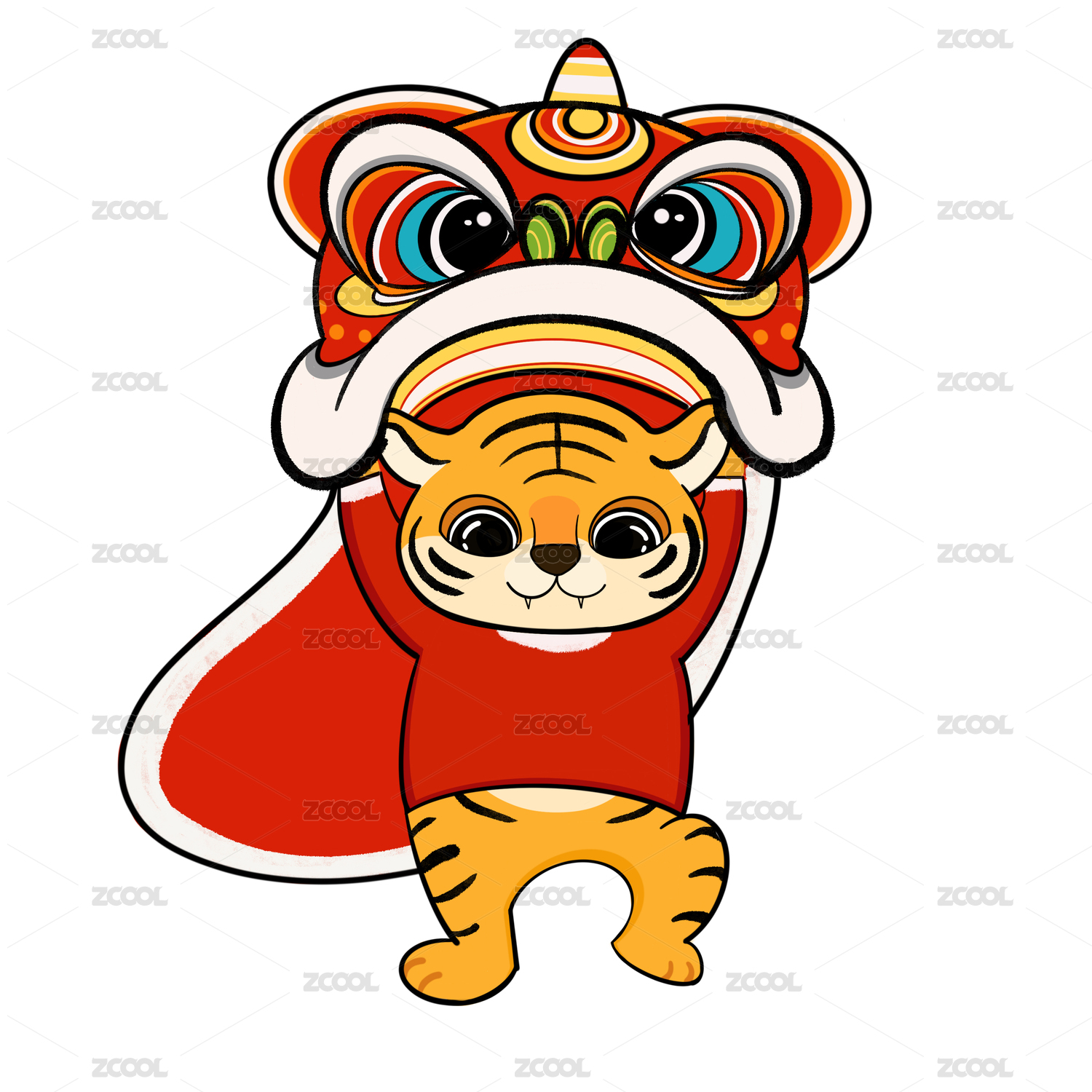 虎年新年舞狮可爱的老虎素材