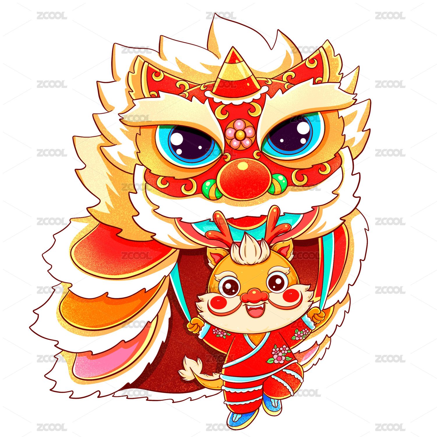 国潮新年春节龙年舞狮龙元素