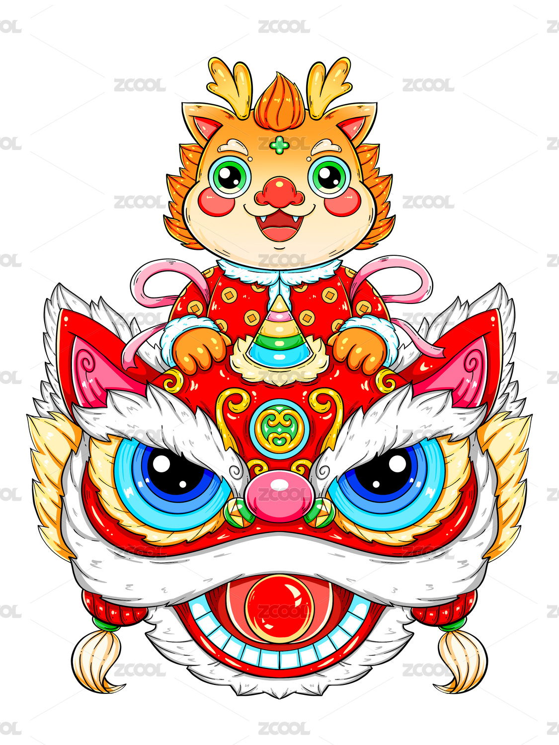 国潮喜庆新年龙年醒狮龙