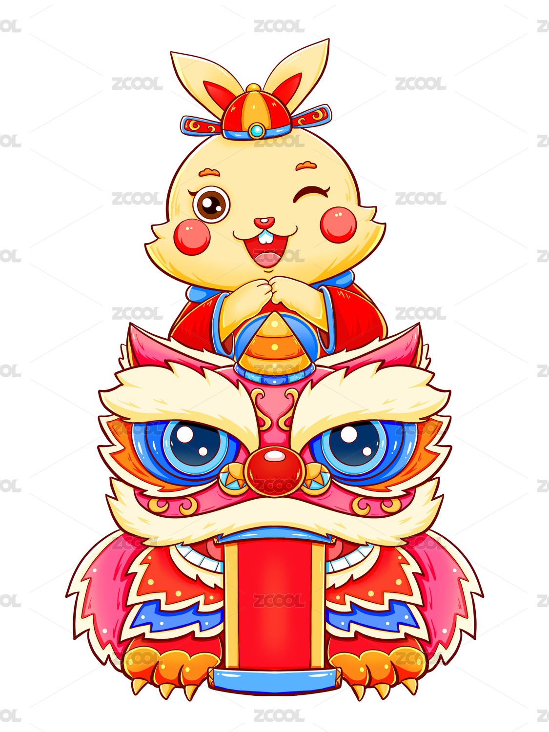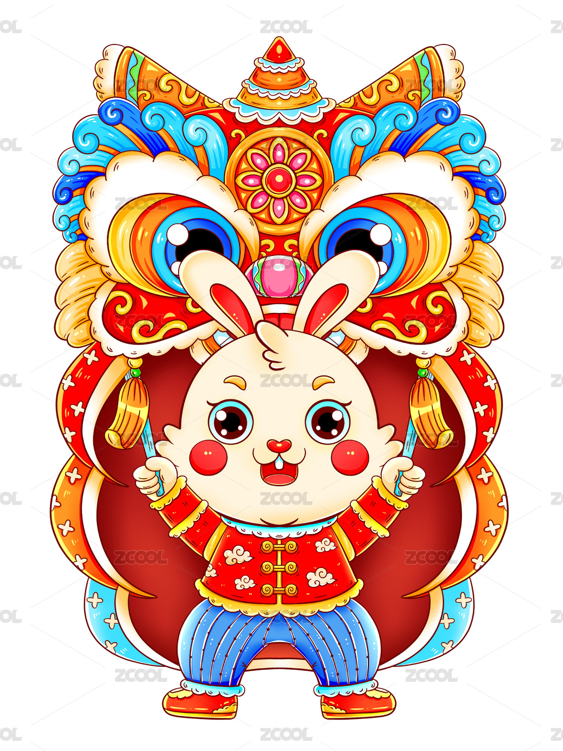 国潮兔年舞狮的兔子