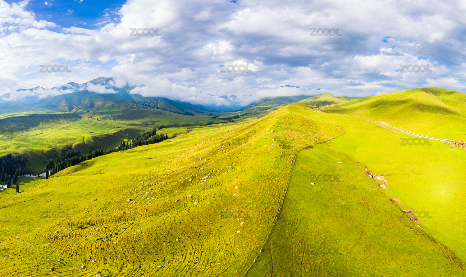 中国新疆伊犁州特克斯县喀拉峻草原航拍