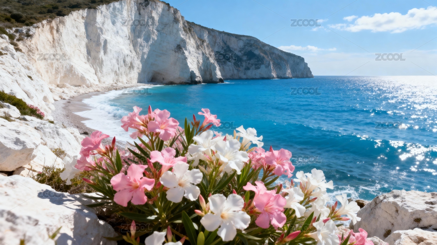 悬崖海岸鲜花绽放
