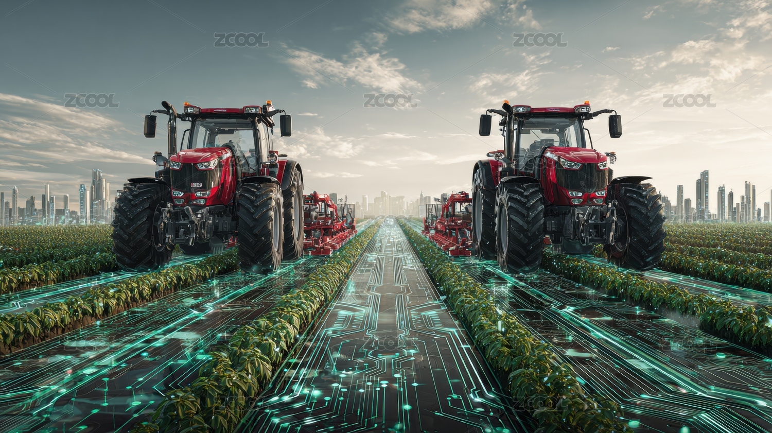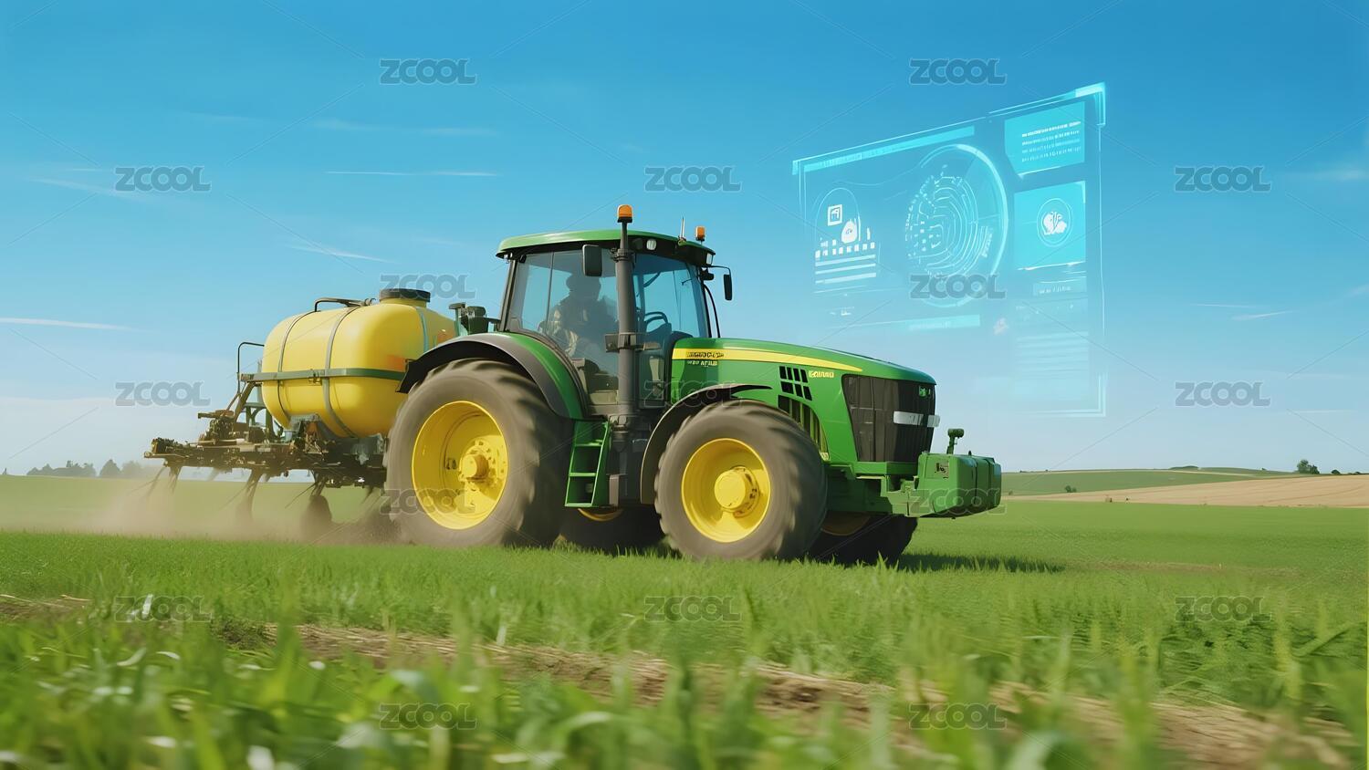 未来感农场:数字化拖拉机在田野中作业