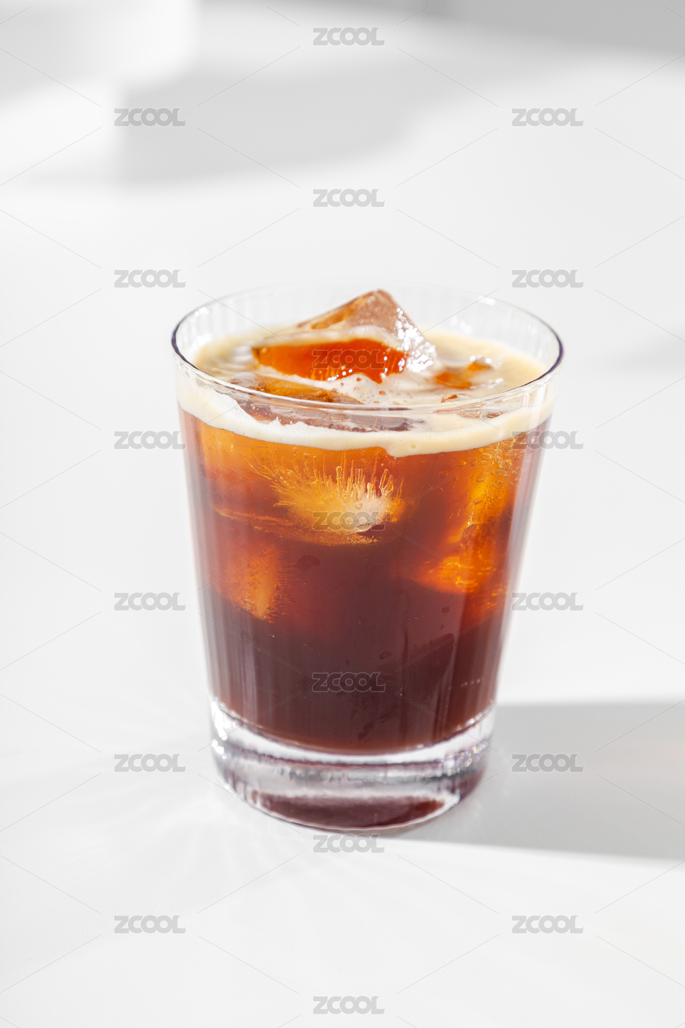 桌面上的杯子里美味香气四溢的冰美式咖啡