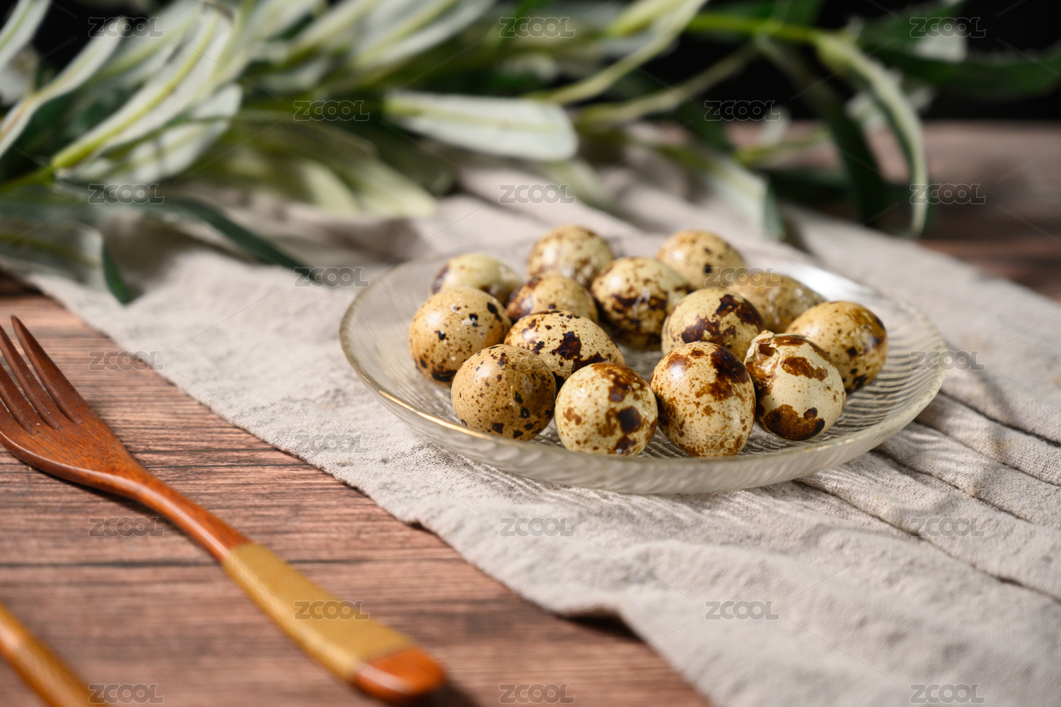 桌面上的盘子里的美味可口的盐焗鹌鹑蛋