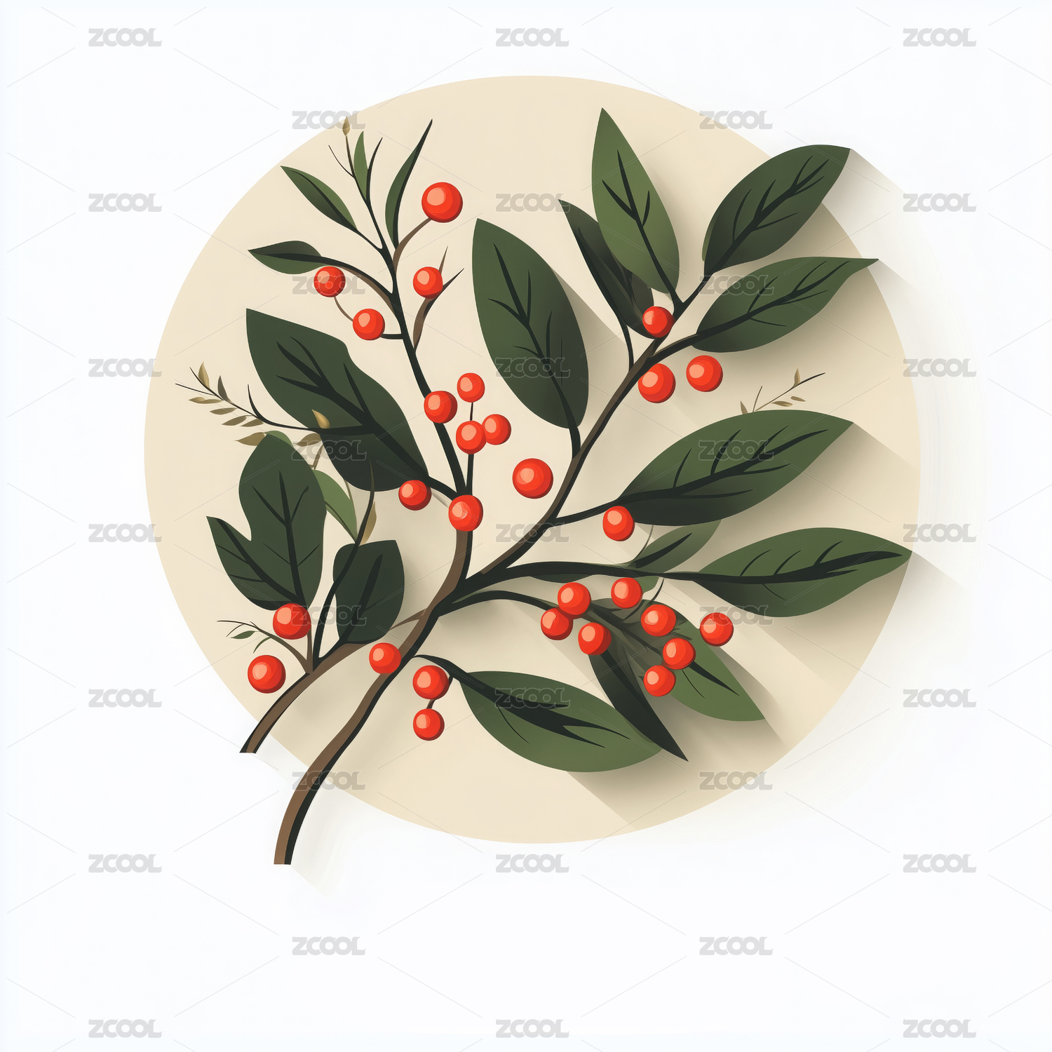 成熟的浆果和绿色的叶子插画图