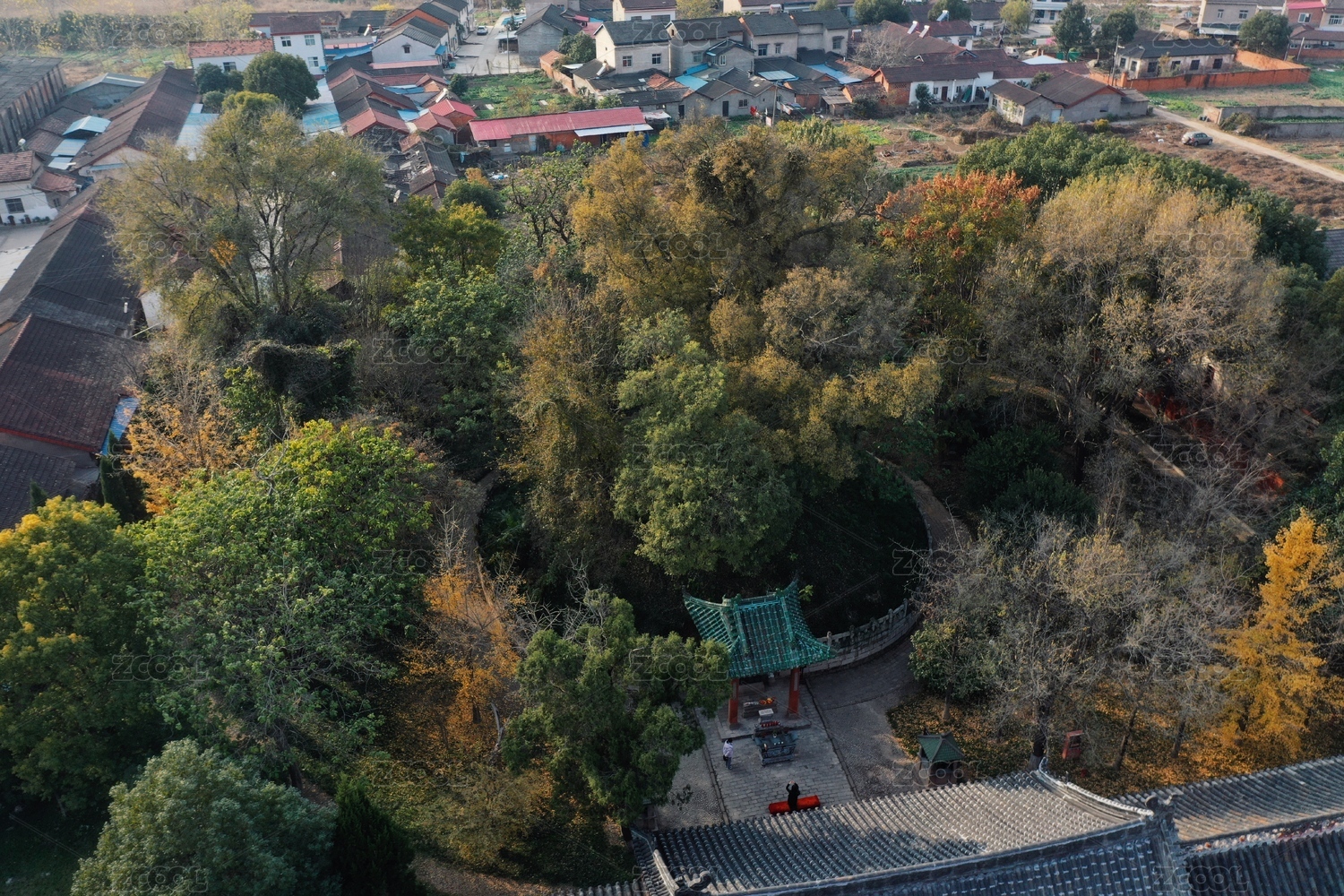 航拍中国北京秋天银杏掩映下的橝柘寺