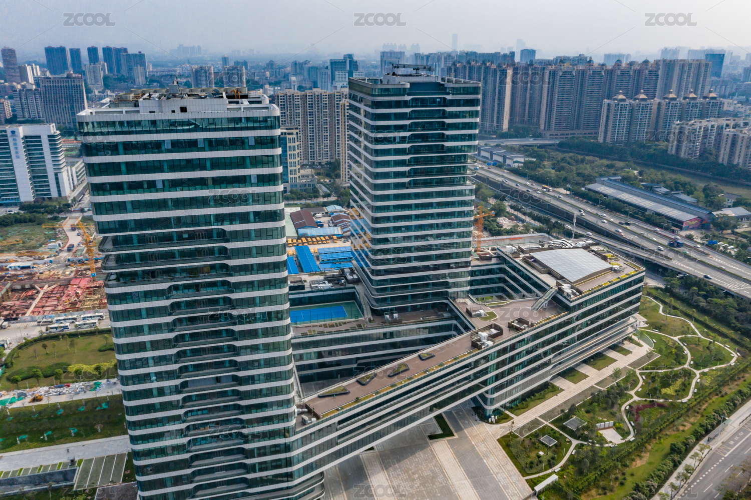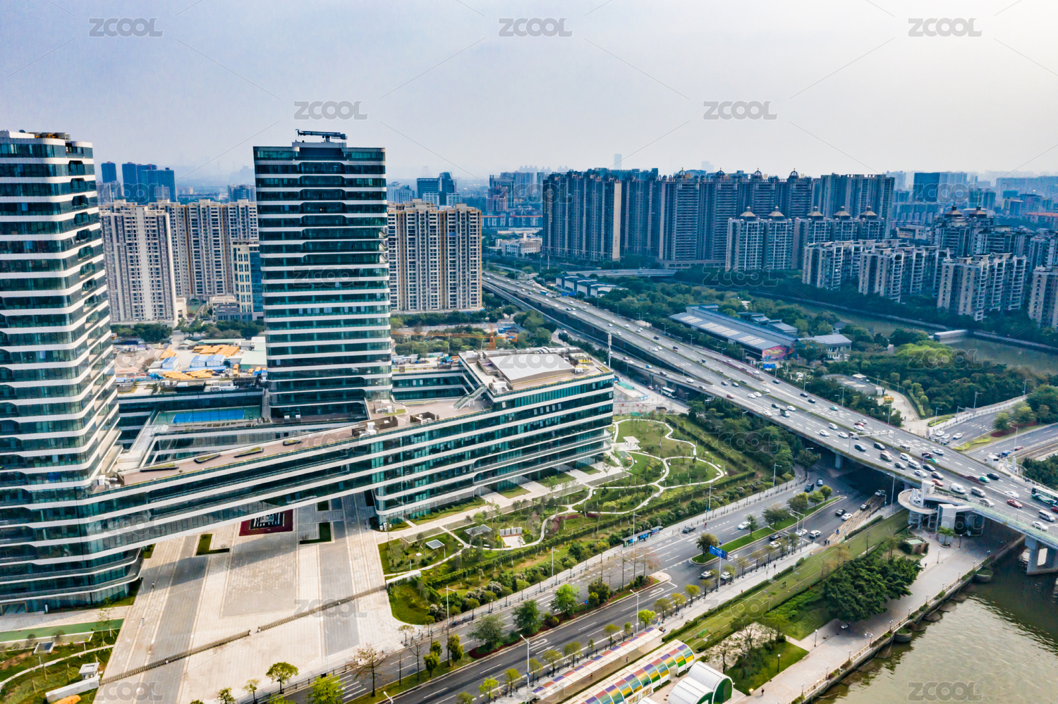 杭州滨江区新建城市商务写字楼园区建筑群航