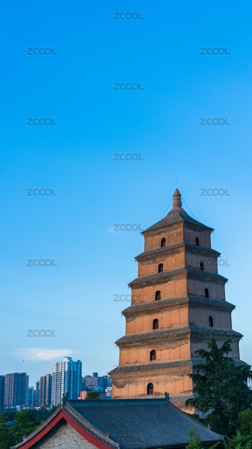 蓝天下的中国陕西西安大雁塔建筑风光
