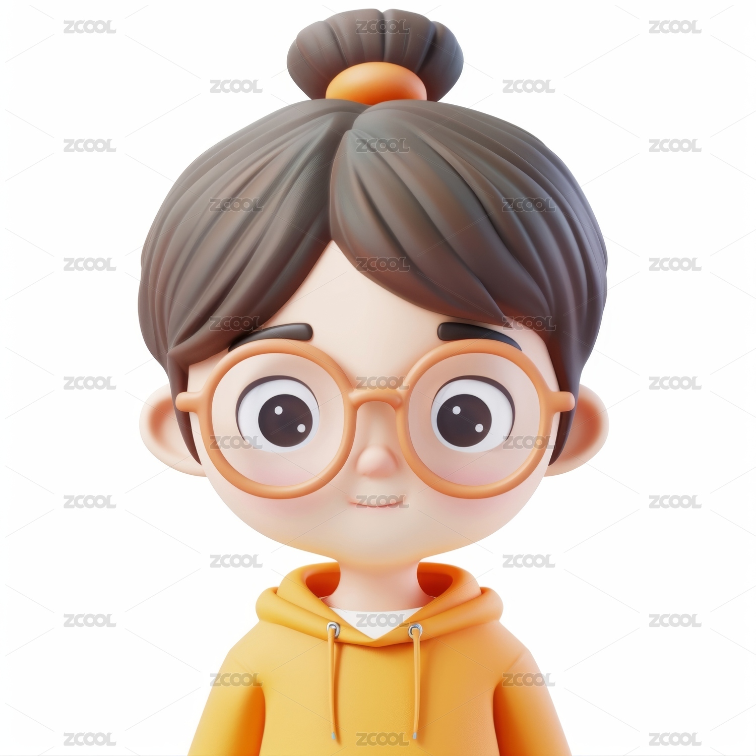 一个戴着眼镜的可爱小女孩3D卡通插画