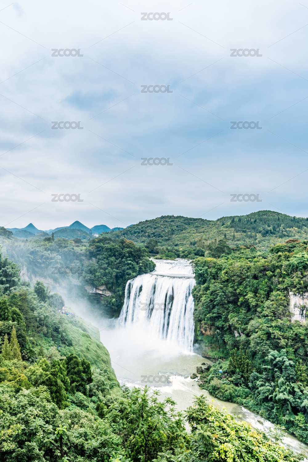 中国贵州安顺黄果树大瀑布高视角风光特写