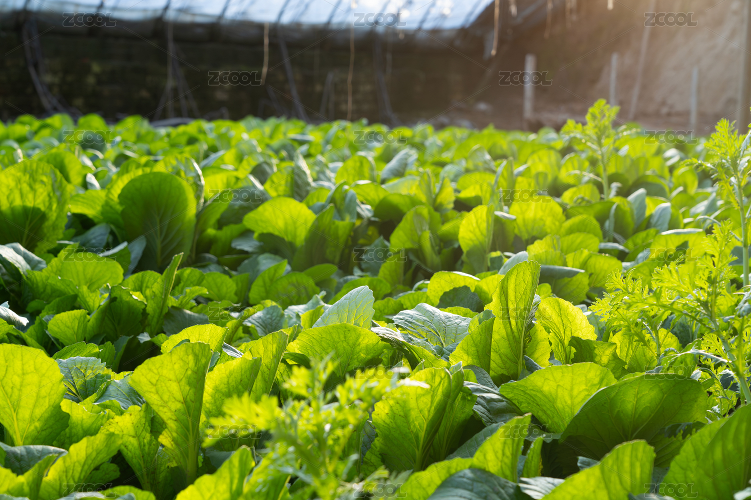 黄昏阳光下蔬菜大棚里的有机蔬菜