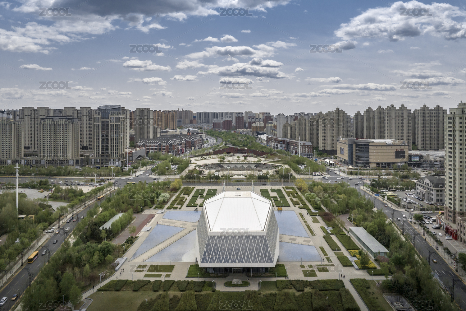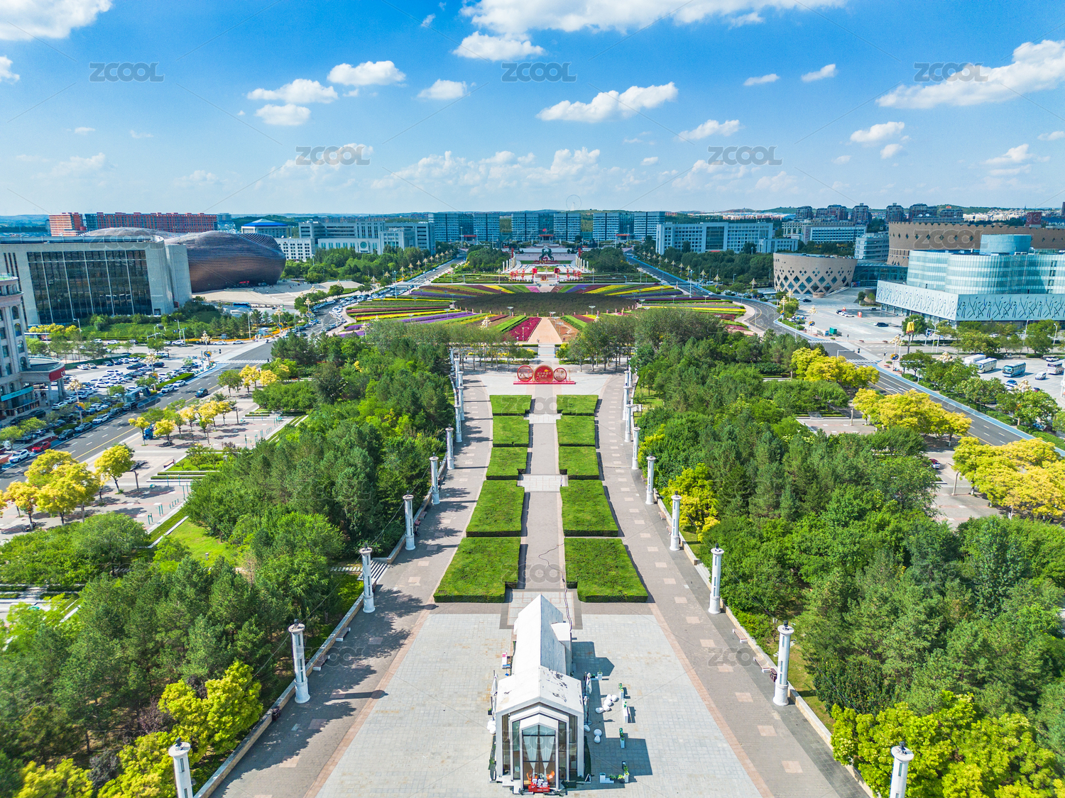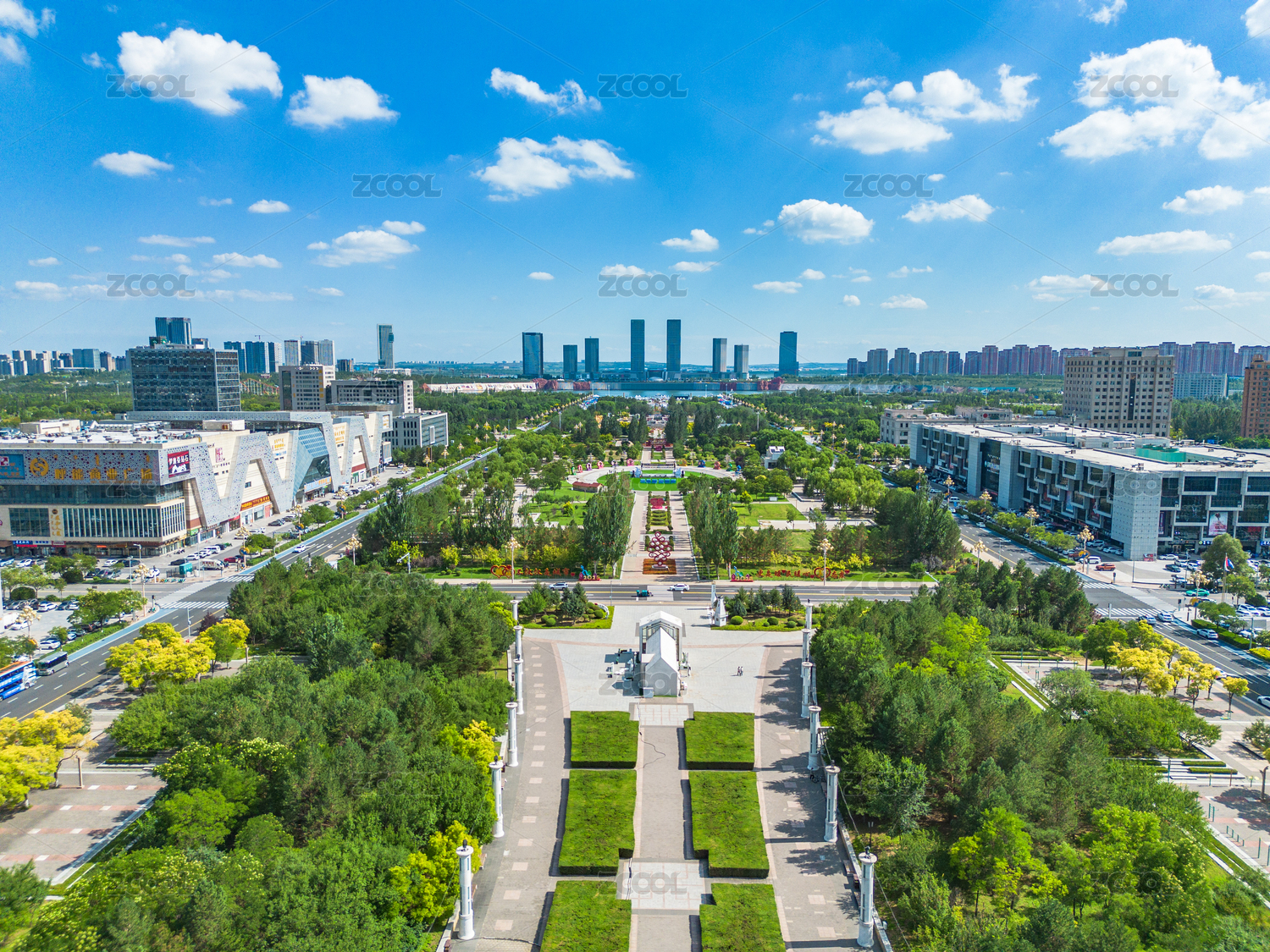 鄂尔多斯,内蒙古,康巴什,城市,天际线,新区,广场,公园,绿化,航拍