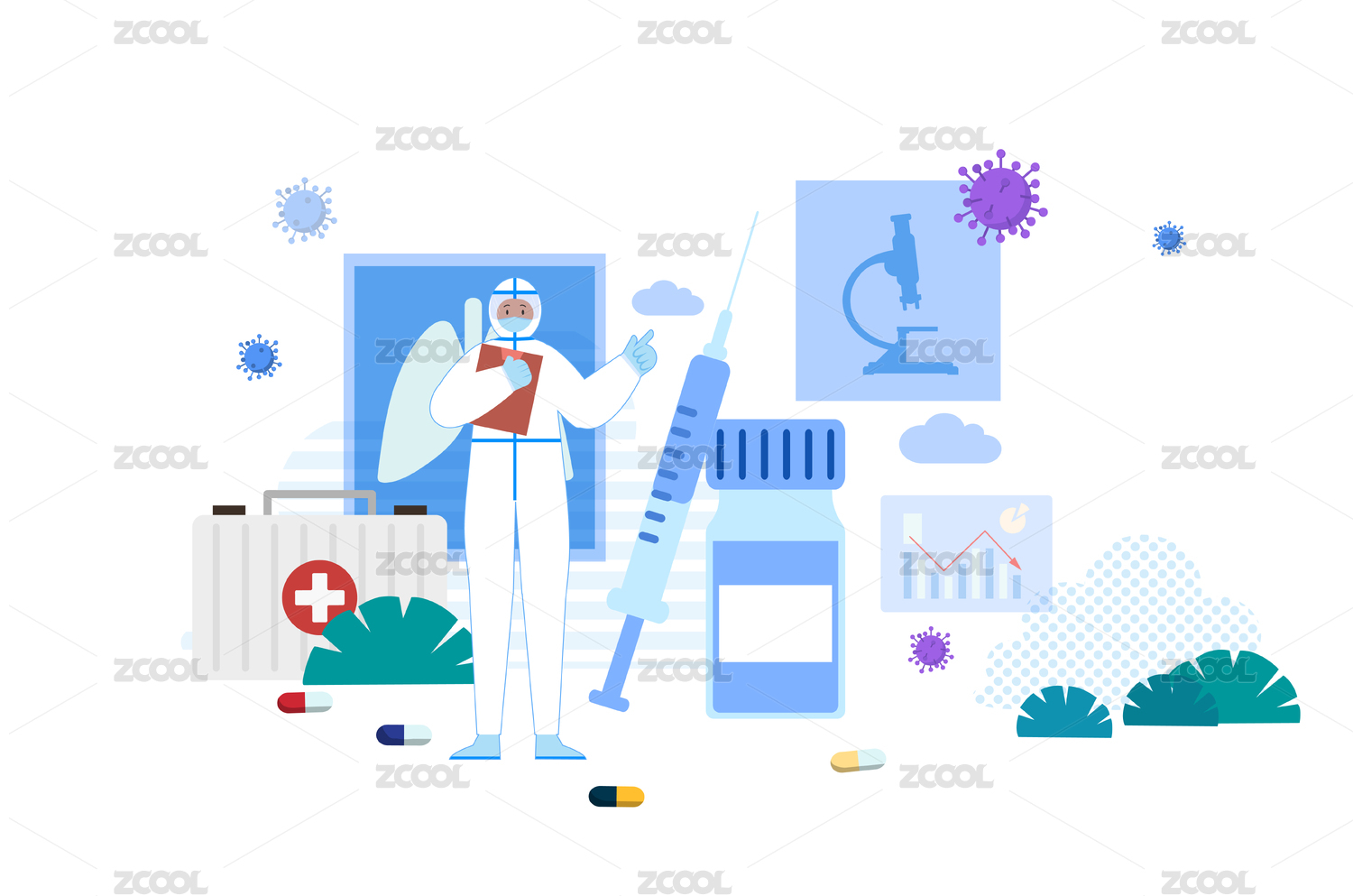 疫情医疗抗疫防护矢量插画