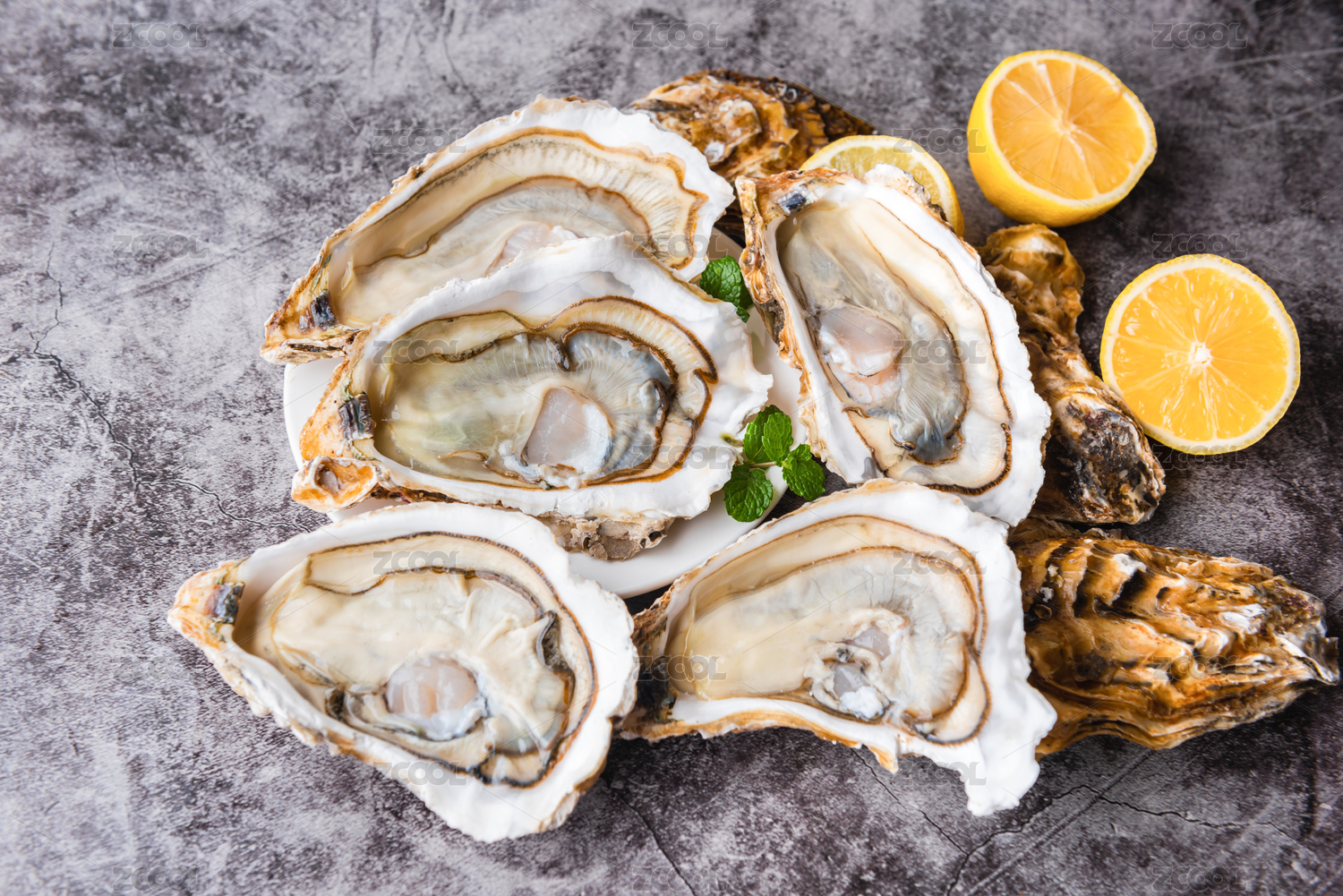 新鲜的生蚝和柠檬