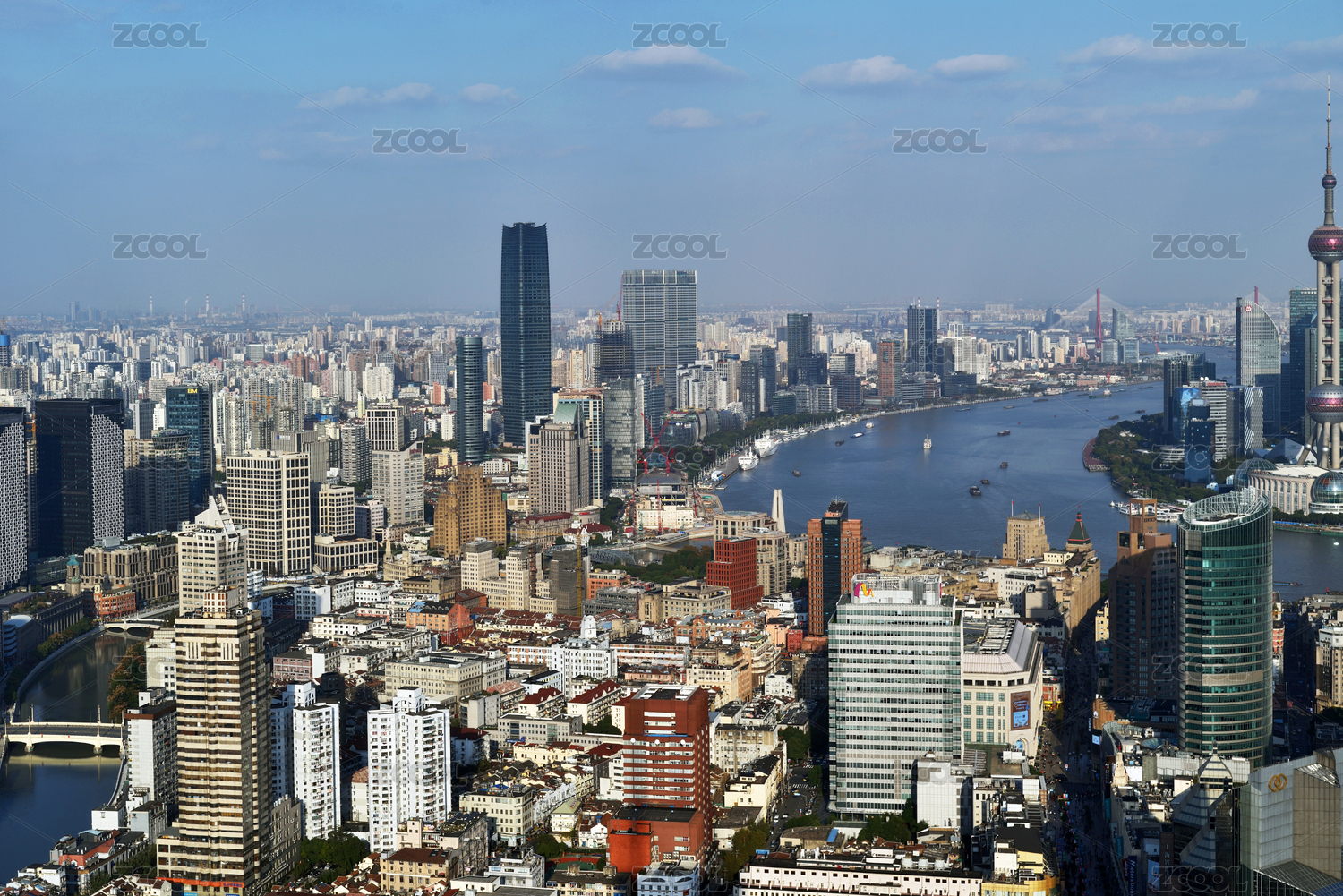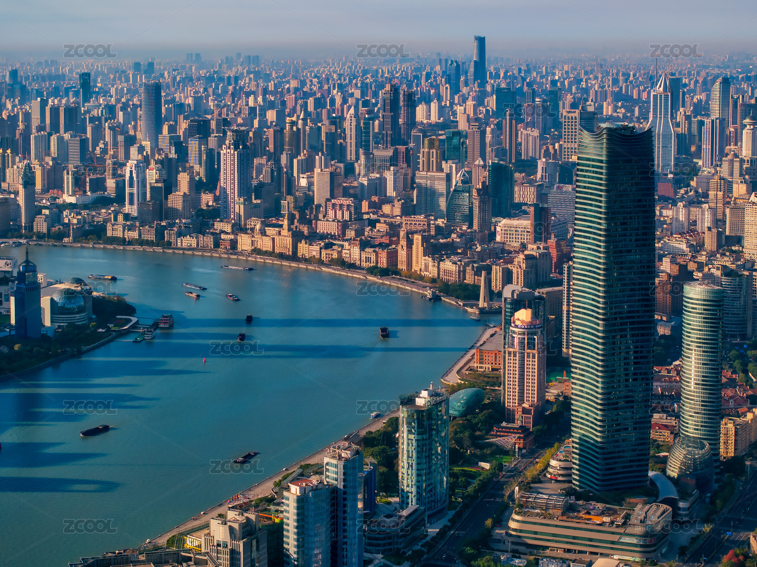中国上海外滩黄浦江陆家嘴金融城建筑城市风