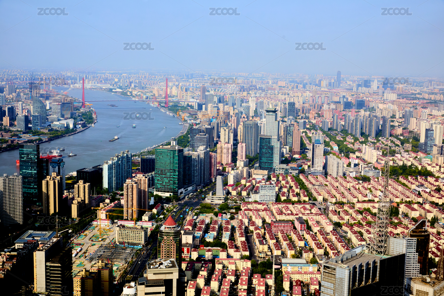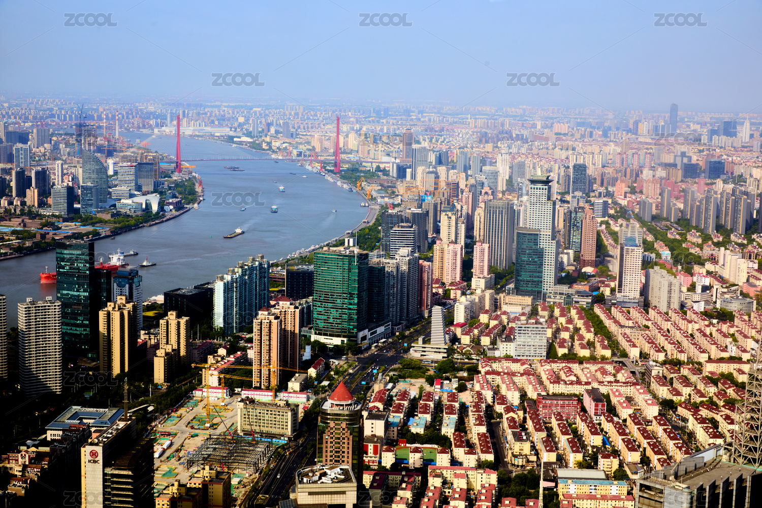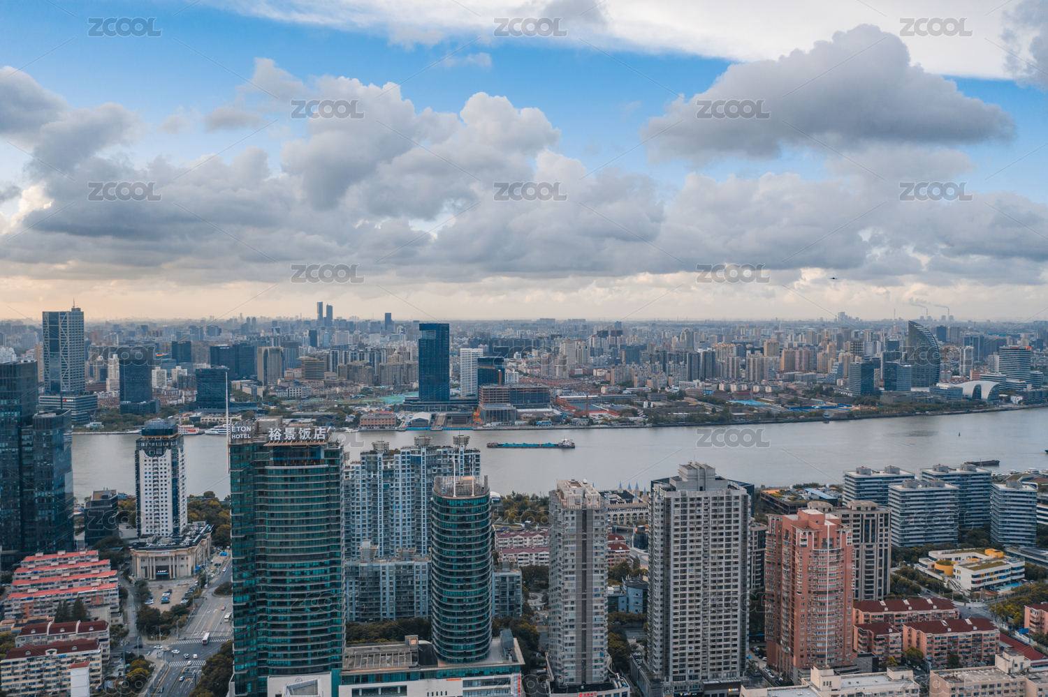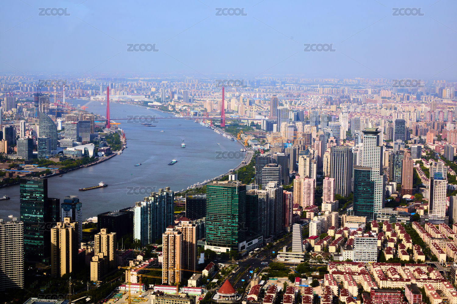 中国上海南浦大两岸的现代建筑鸟瞰图