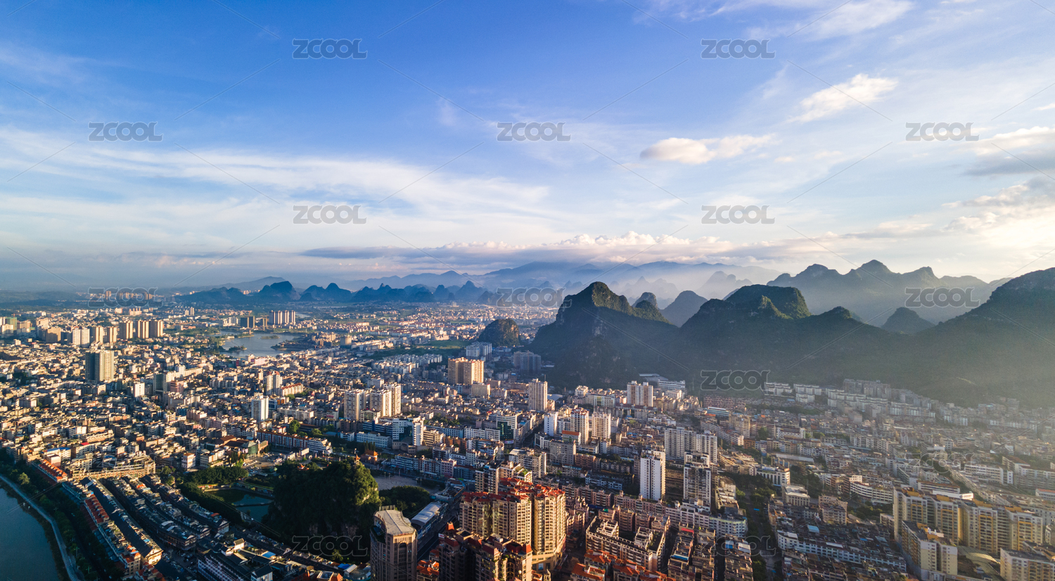 桂林漓江沿岸城市风景及自然风光日落晚霞