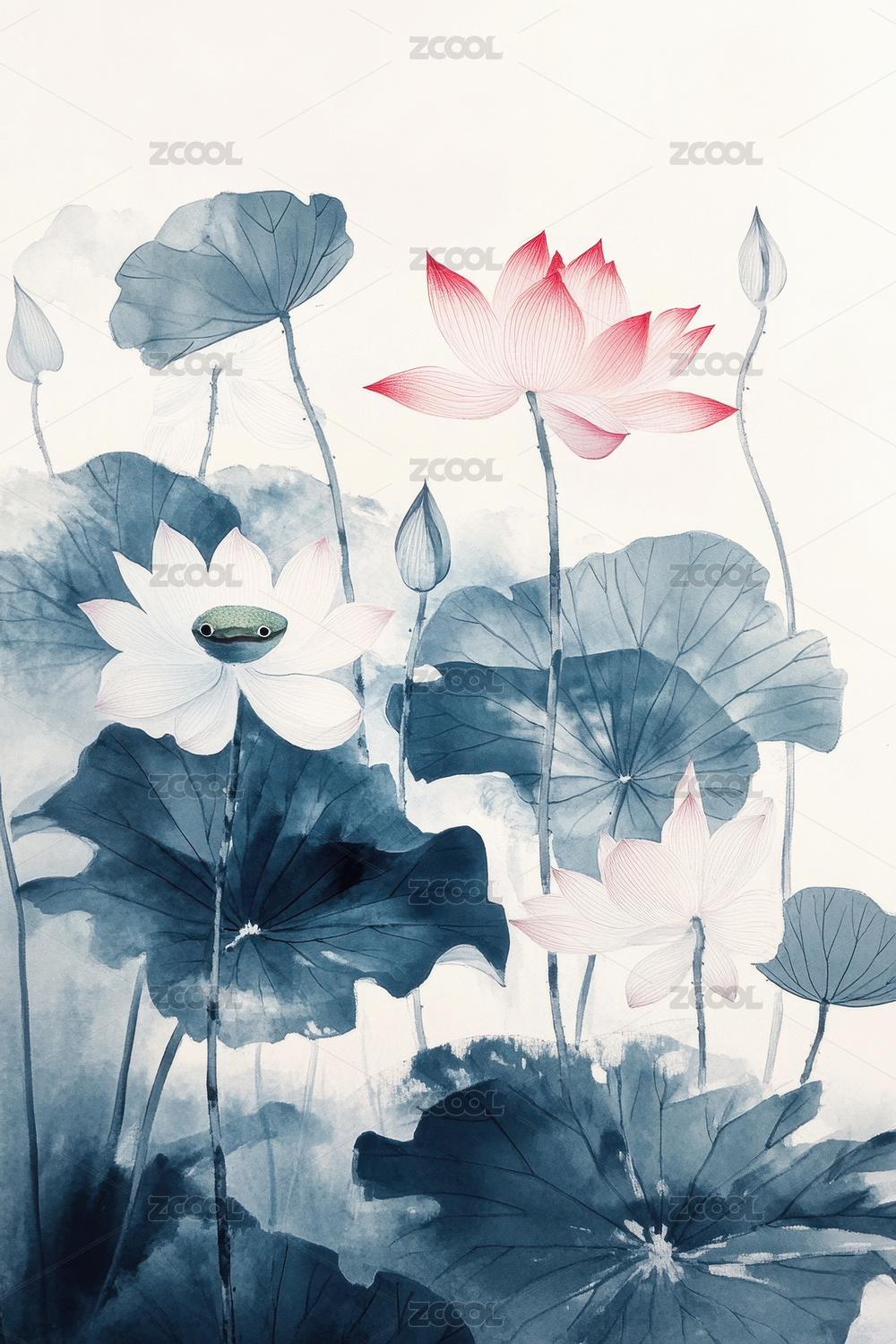 背景,图像,设计,插画,形状,艺术,工笔画,中国画,夏天,荷花