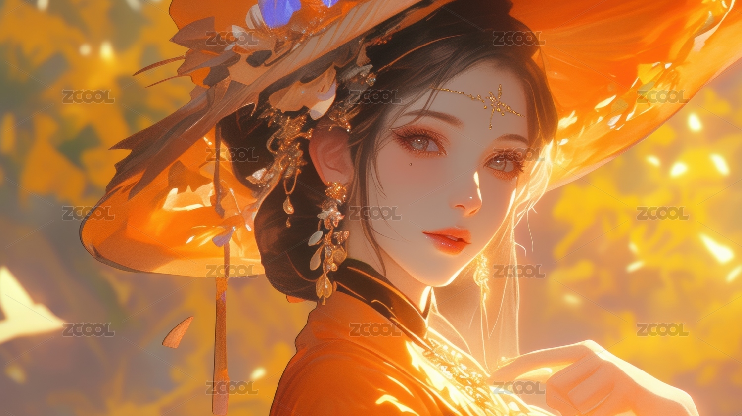 秋叶环绕的神秘女子
