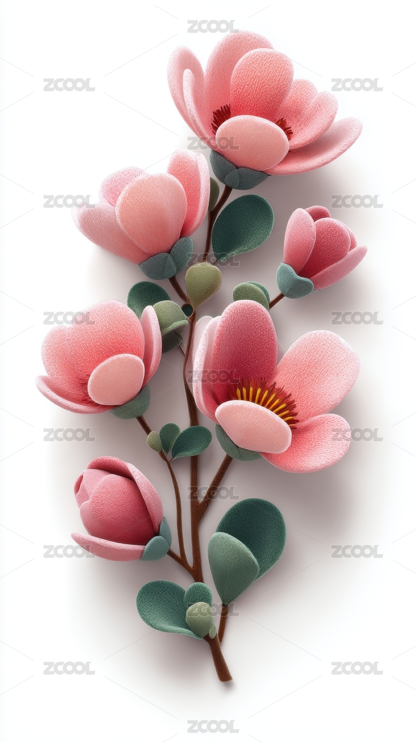粉色花朵与绿叶的艺术插画