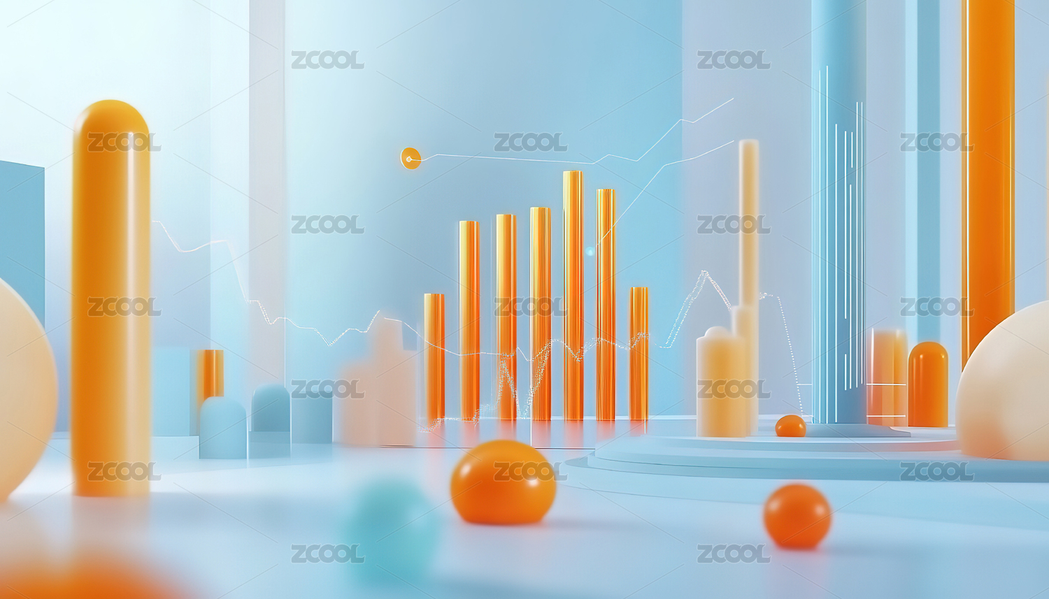 金色柱状图与光效背景